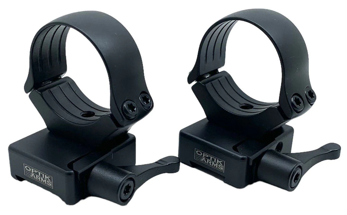 La gama de anillas desmontables (QR) de OPTIK ARMS se desmontan automáticamente en 3 segundos y se colocan y desmontan tantas veces como se quiera, quedando siempre el visor a tiro.