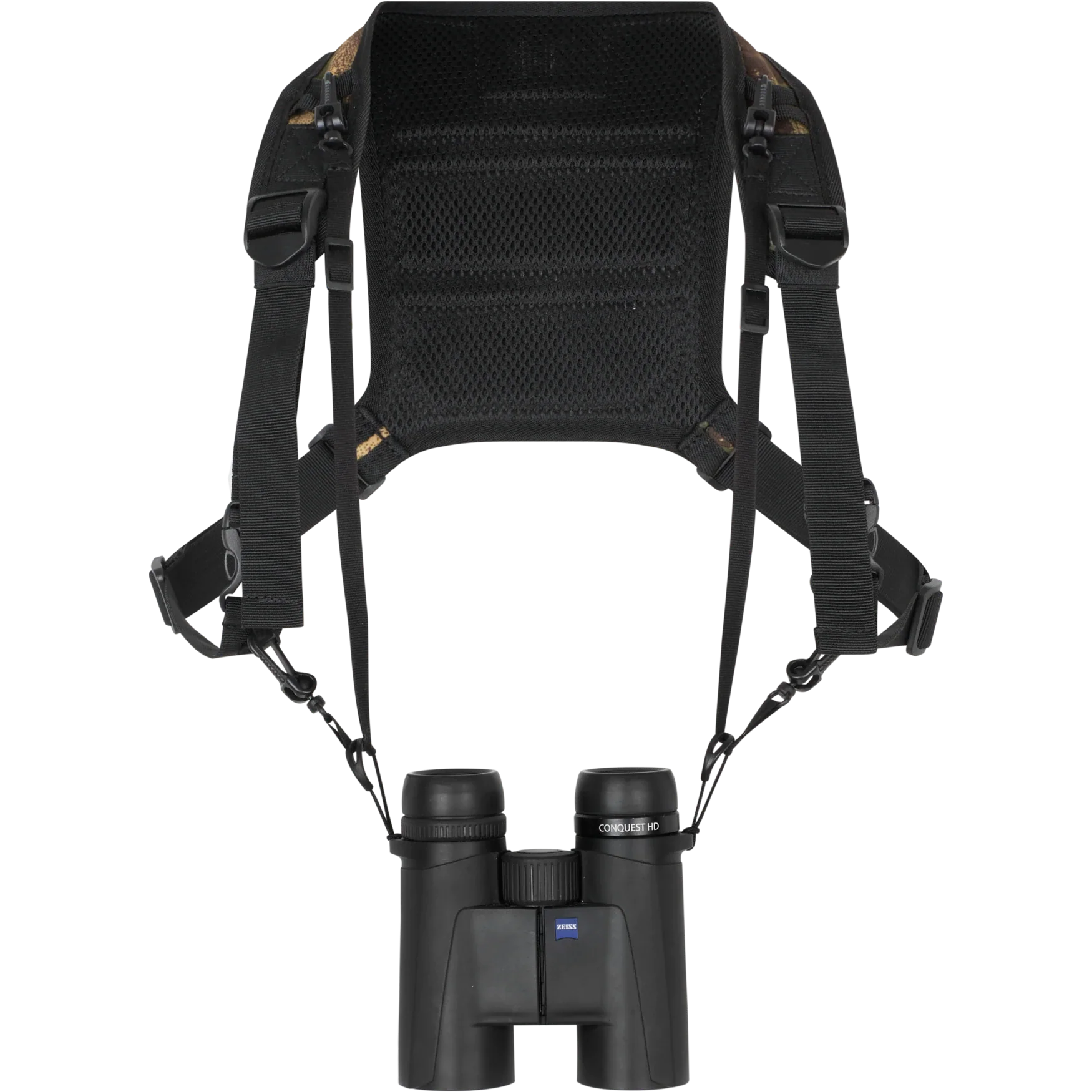 La correa bino de Deer Stalker es una forma muy práctica de llevar los prismáticos, especialmente en distancias largas o cuando se caza en la montaña o en otros terrenos irregulares. No sólo mantiene los prismáticos en su lugar contra el pecho, sino que también los protege y ofrece una serie de otras características útiles.