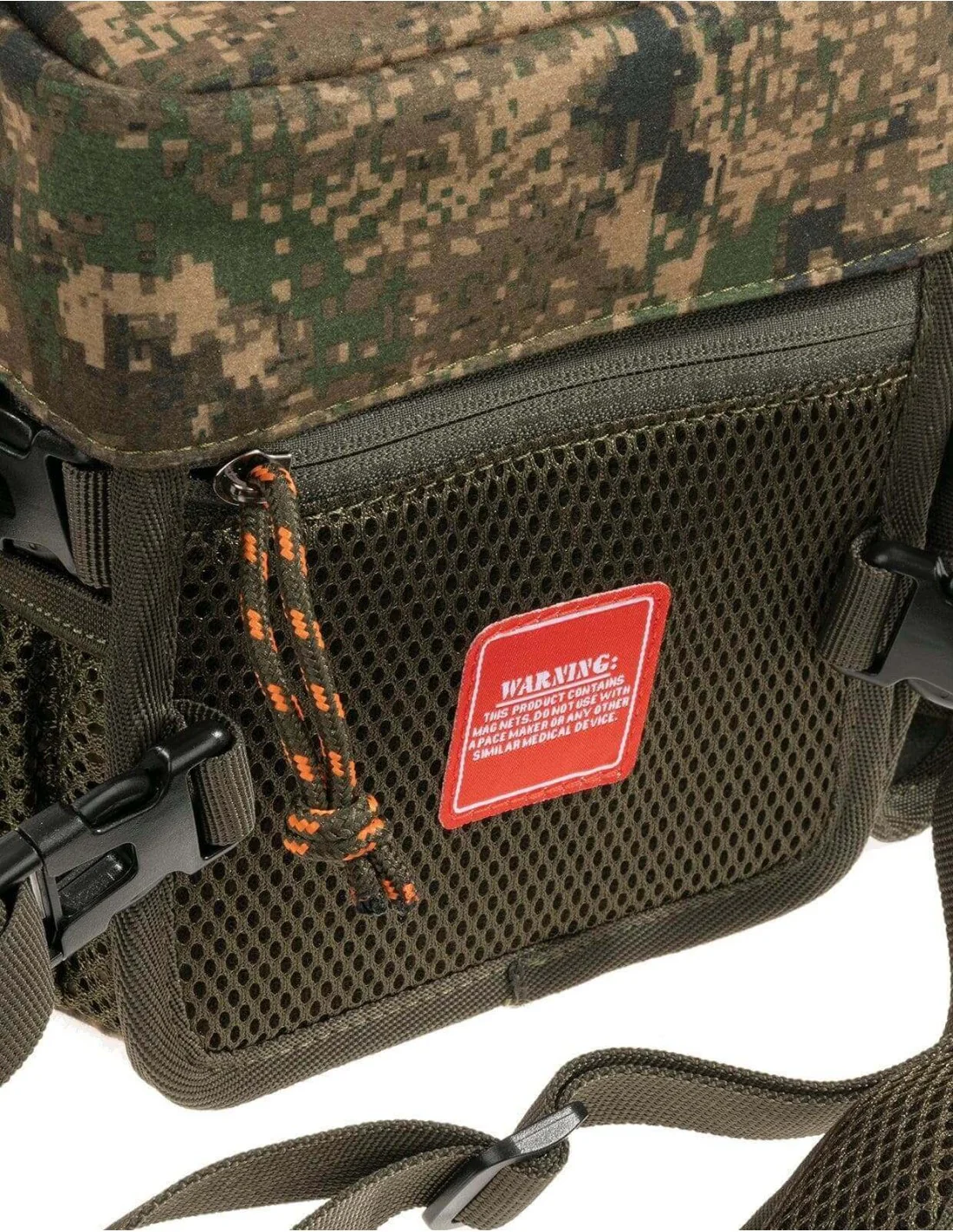 Funda para binoculares equipada con un sistema de arnés de tensión ajustable para mantenerla siempre en su posición. Sus correas regulables interiores y su tapa de cobertura total con cierre magnético ofrecen la mejor protección para nuestros binoculares. Los bolsillos delantero y trasero con cremallera, así como el estuche RF y los puntos de anclaje laterales, hacen del conjunto una cómoda y versátil «workstation». El bolsillo delantero contiene una línea portabalas en el interior. El estuche lateral RF proporciona protección segura y acolchada para nuestro GPS u otros dispositivos electrónicos.