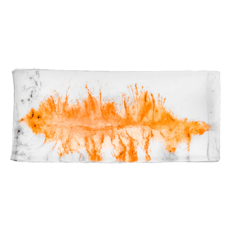 El bloque de gel (35 cm) muestra el impacto de la TIPSTRIKE™ entrando por la izquierda a 800 m/s. La bala está diseñada para liberar su energía con potencia en el impacto. Crea un fuerte efecto de choque en la presa y, tras esta gran liberación de energía, la velocidad de la bala cae rápidamente. El bloqueo mecánico de plomo asegura que la bala retenga el mayor peso posible, lo que a su vez proporciona una excelente penetración.