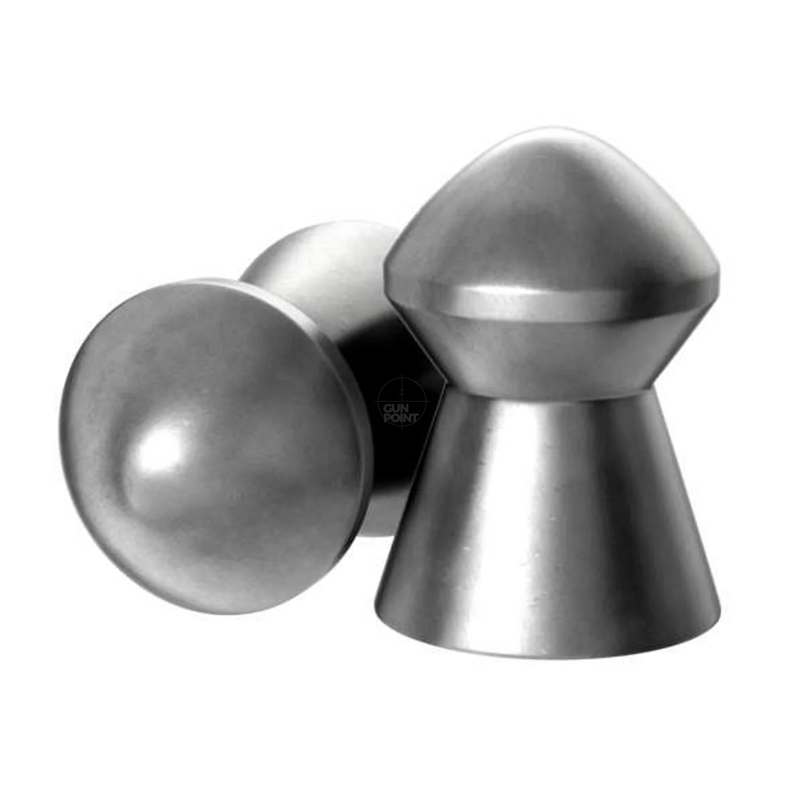 Balín pesado, muy preciso para distancias largas. Diseño aerodinámico extraordinario para un alto poder de perforación y profundidad. Grupos de disparo pequeños. Emplomado muy bajo y agrupaciones homogéneas gracias a la aleación especial y engrase. Liso.