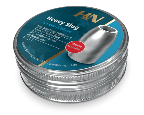 El H&N Heavy Slug amplía la gama de pesos en el calibre .22 y está diseñado para la caza a larga distancia y el tiro al blanco con armas de aire comprimido de alta potencia. La característica más importante es un nuevo diseño de punta hueca con un gran meplat combinado con plomo blando. Proporciona la máxima expansión y transferencia de energía después del impacto – para una muerte rápida y humanitaria. El Heavy Slug ha sido desarrollado y probado en estrecha colaboración con el cazador de aire Gerhard, un reconocido experto en caza con armas de aire comprimido y tiro de competición.