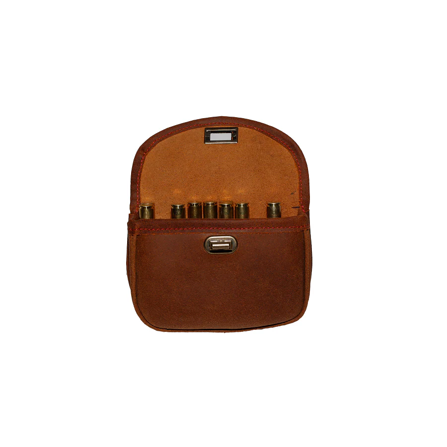 Bolsito Portabalas Delux en Cuero Engrasado Coñac con Carcasa Para 20 Balas. Disponible para Calibre .300 y .30-06.