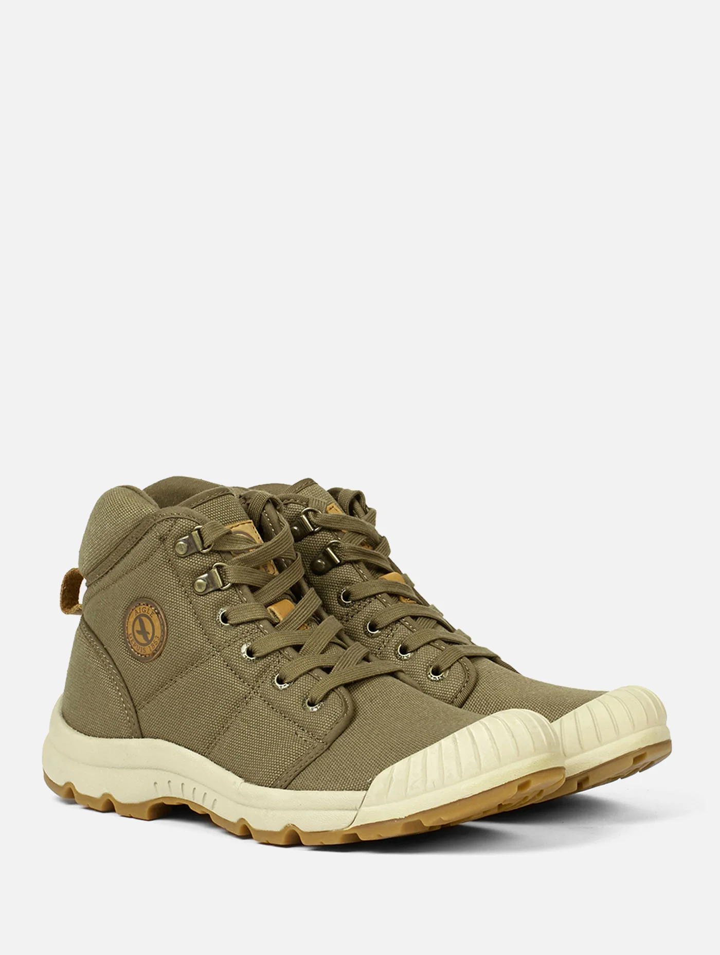 Bota de lona de algodón que aumenta la ligereza y transpirabilidad. Ideal para largas marchas. El tratamiento repelente al agua de la tela limita la penetración del agua por mucho tiempo. Su cuello acolchado ofrece comodidad y buen soporte para el tobillo. La plantilla Eco-Ortholite absorbe los impactos amortiguando la pisada y la hace transpirable. Es ideal para andar muchos kilómetros gracias a su exclusiva suela EVA y caucho. Peso: 740g.