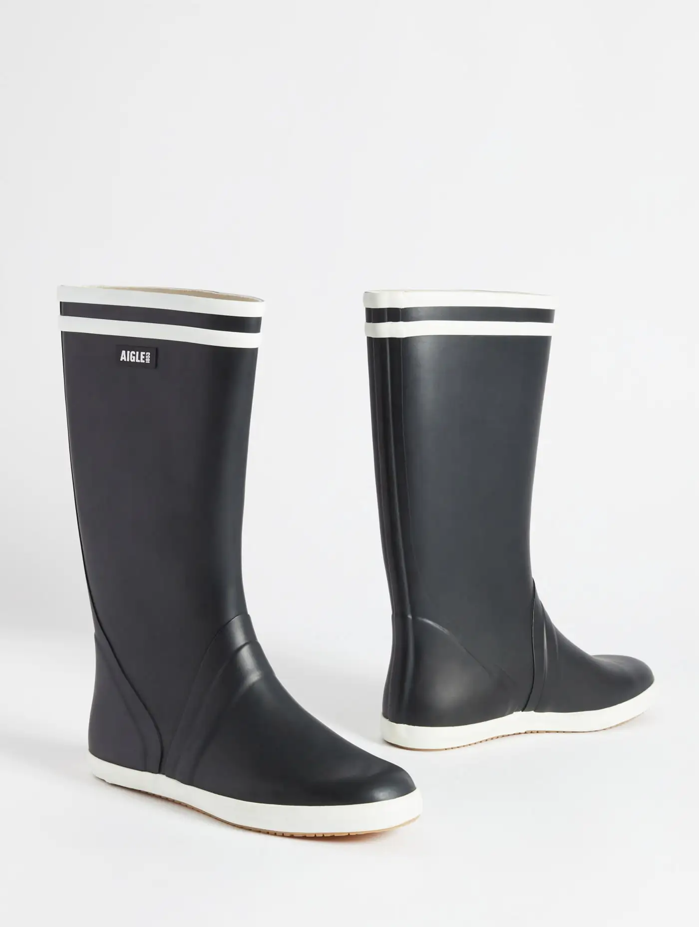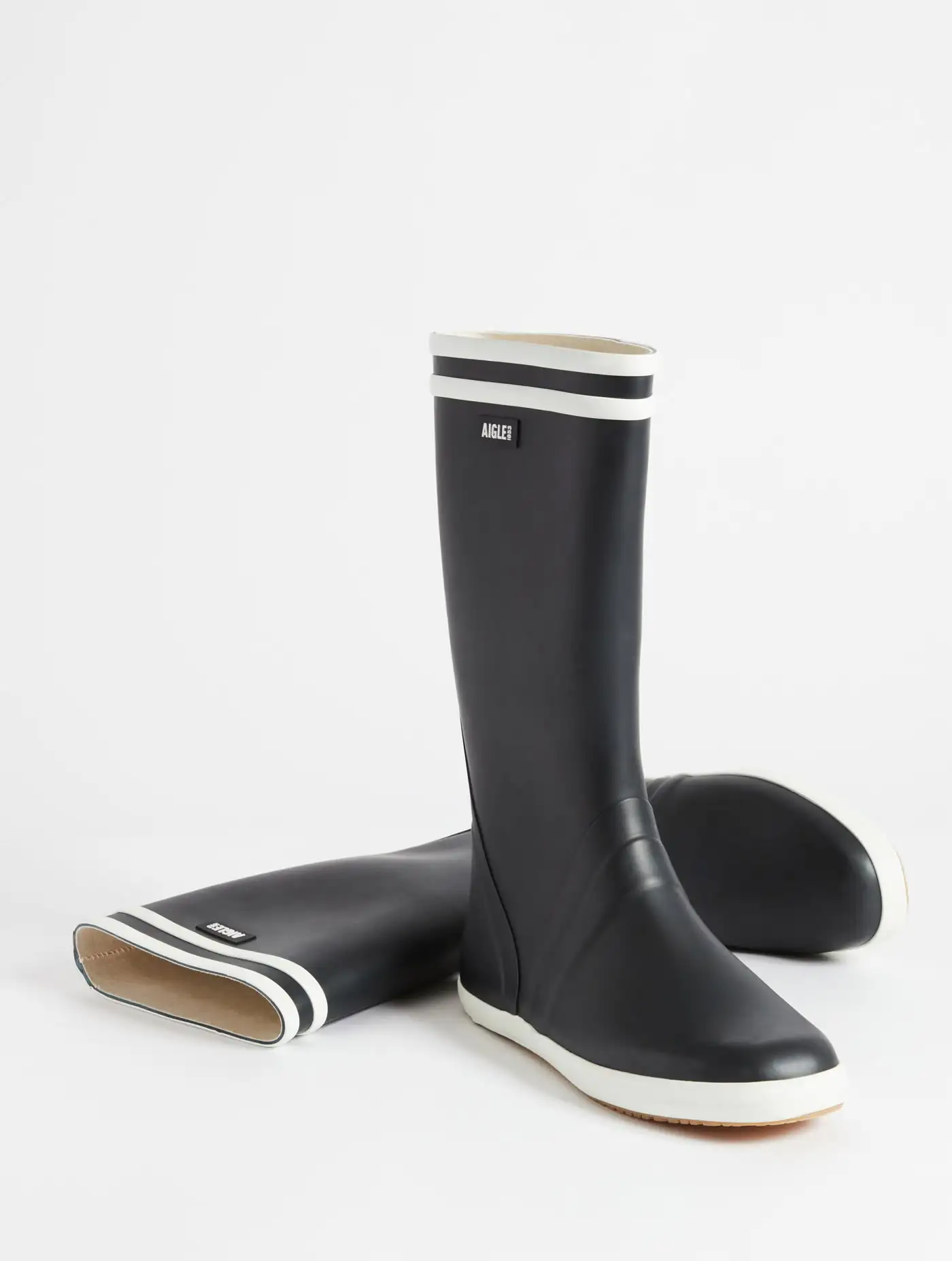 Con sus dos rayas blancas, la bota de lluvia Goeland es uno de los estilos emblemáticos de la marca, especialmente diseñada para las aventuras junto al mar. También disponible en una versión con bloques de color.
