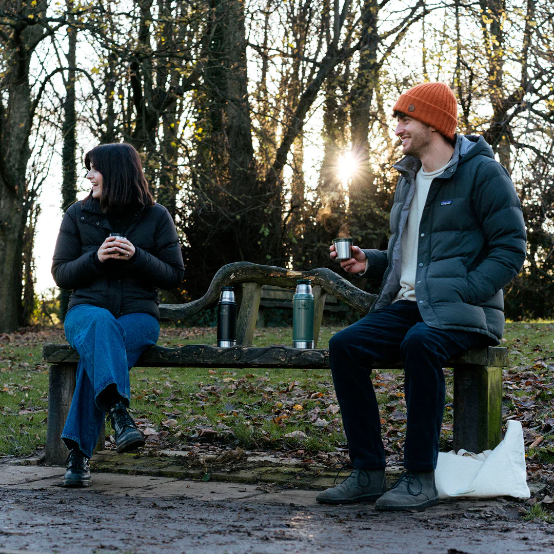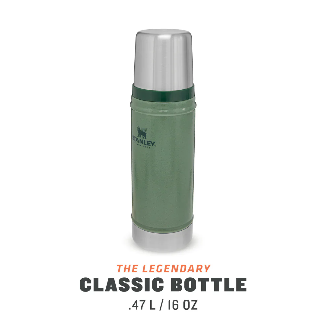 Esta robusta botella está diseñada para resistir caídas, abolladuras y golpes, a la vez que preserva la integridad térmica de su bebida favorita hasta que termine de disfrutarla. Esta legendaria botella de vacío de acero inoxidable mantiene 0,47 l de su bebida favorita caliente o fría durante 15 horas. La tapa aislante también sirve como vaso para beber.