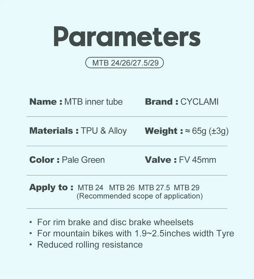Cámara Cyclami TPU Ultra Liviana MTB 29 Presta 45mm