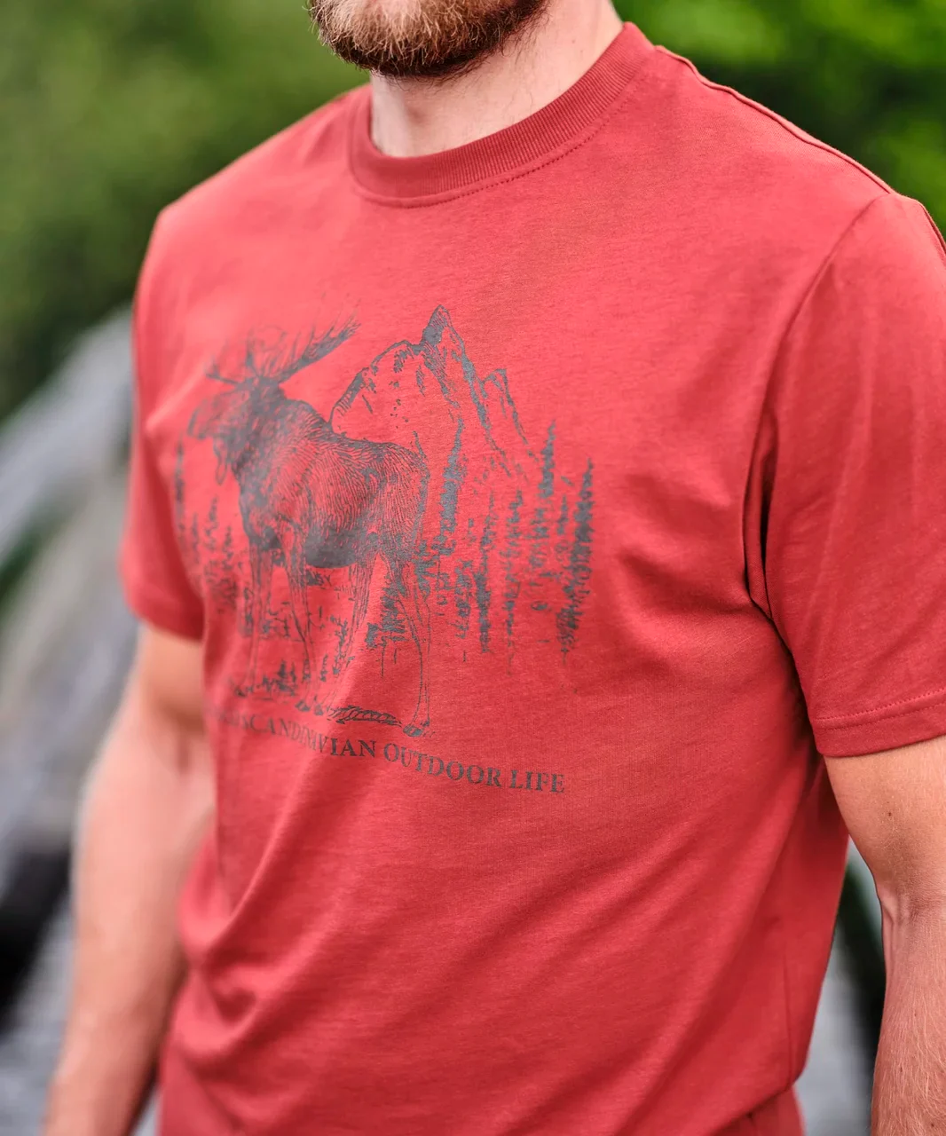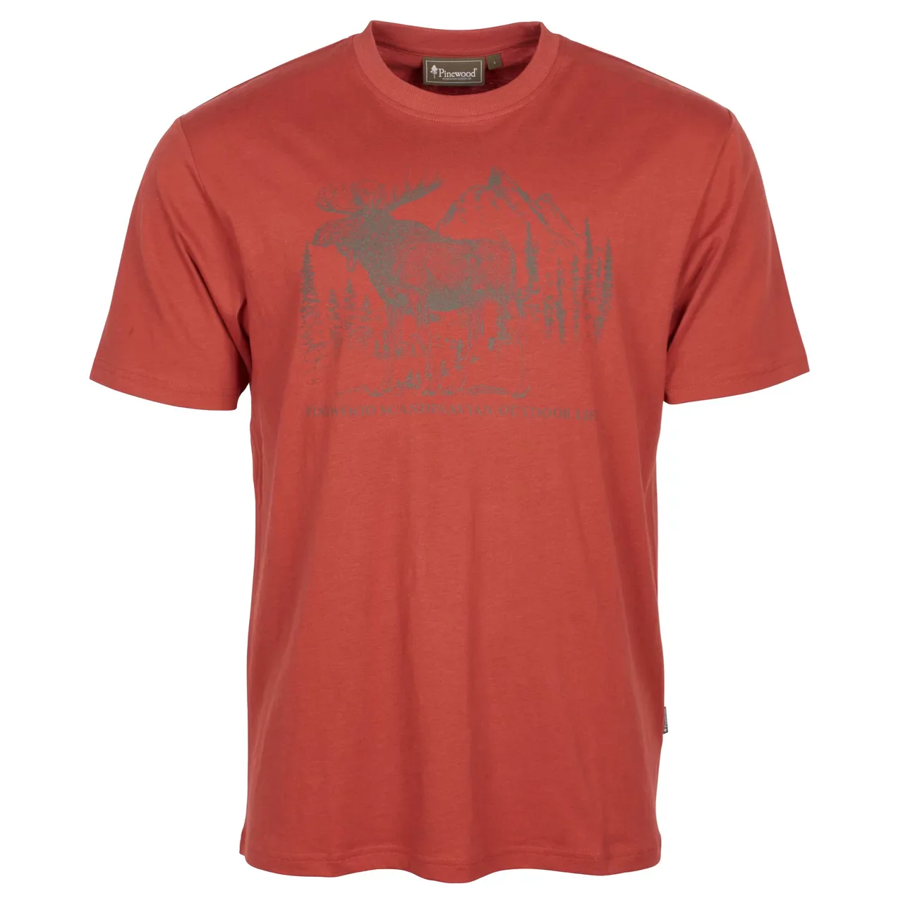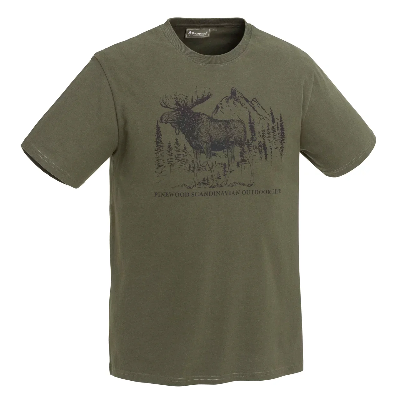 Camiseta de algodón orgánico de 180 gramos. Ajuste normal. Cuello redondo. Motivo estampado de alces.