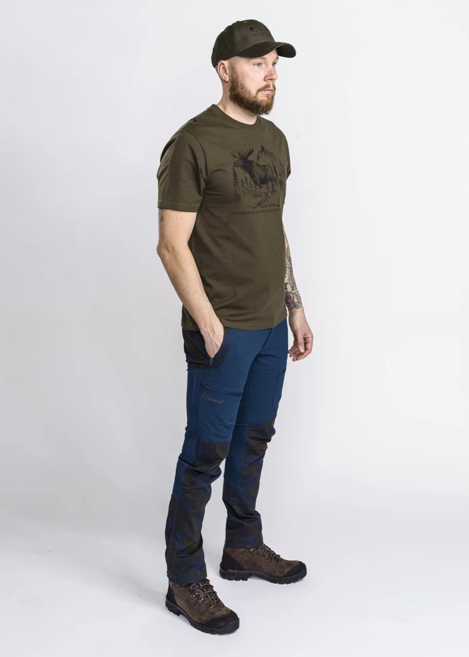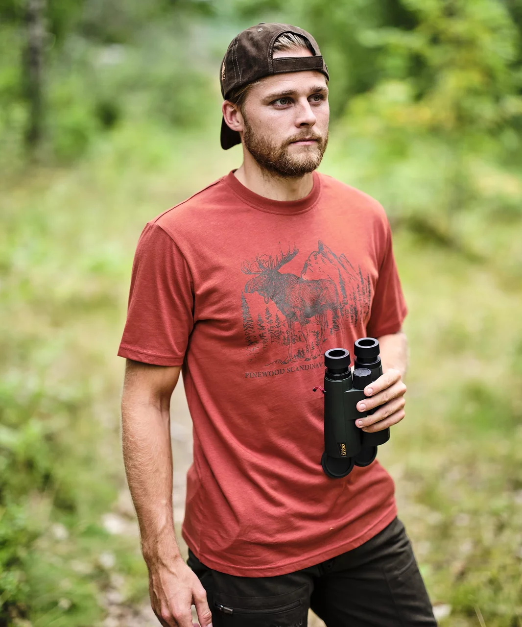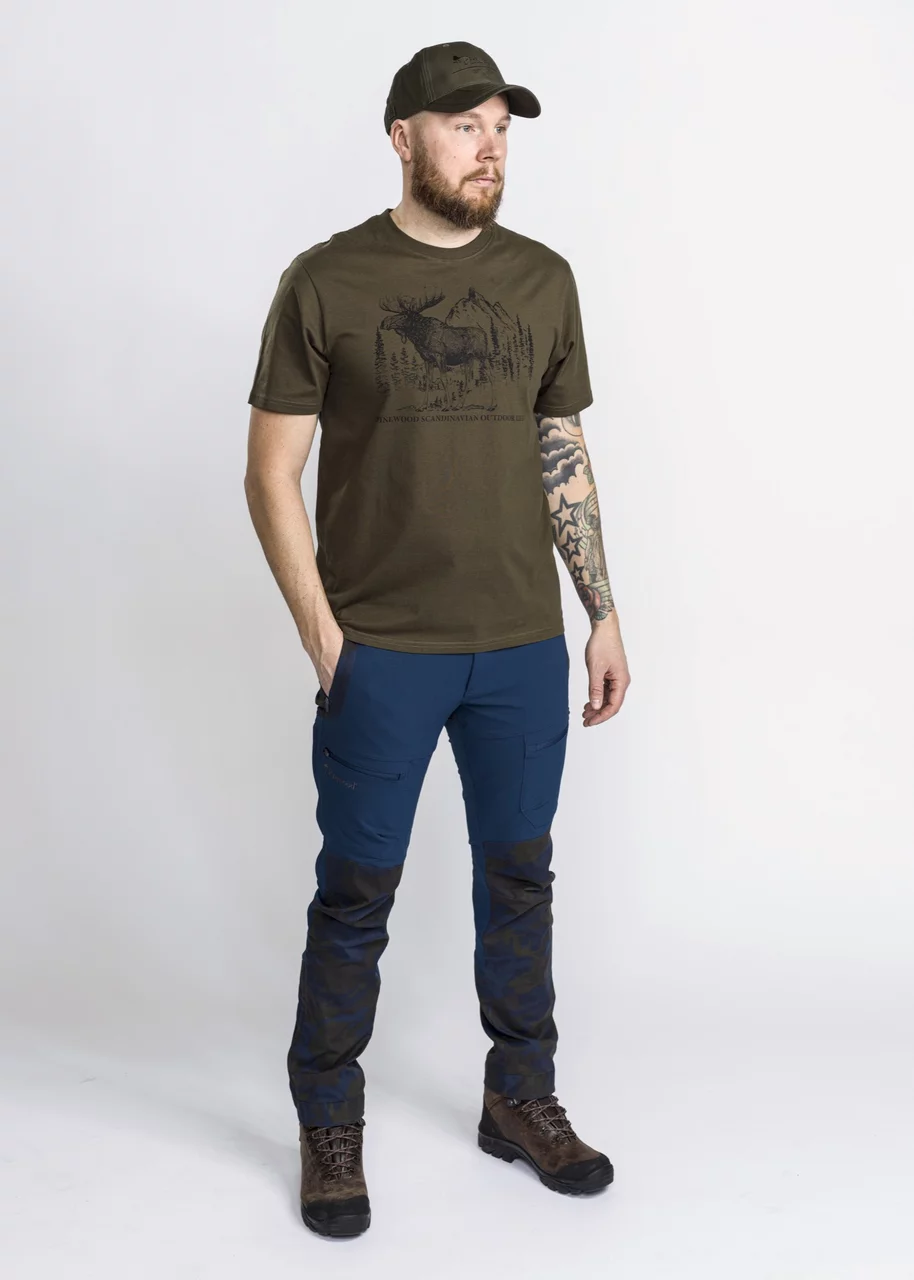 Camiseta de algodón orgánico de 180 gramos. Ajuste normal. Cuello redondo. Motivo estampado de alces.