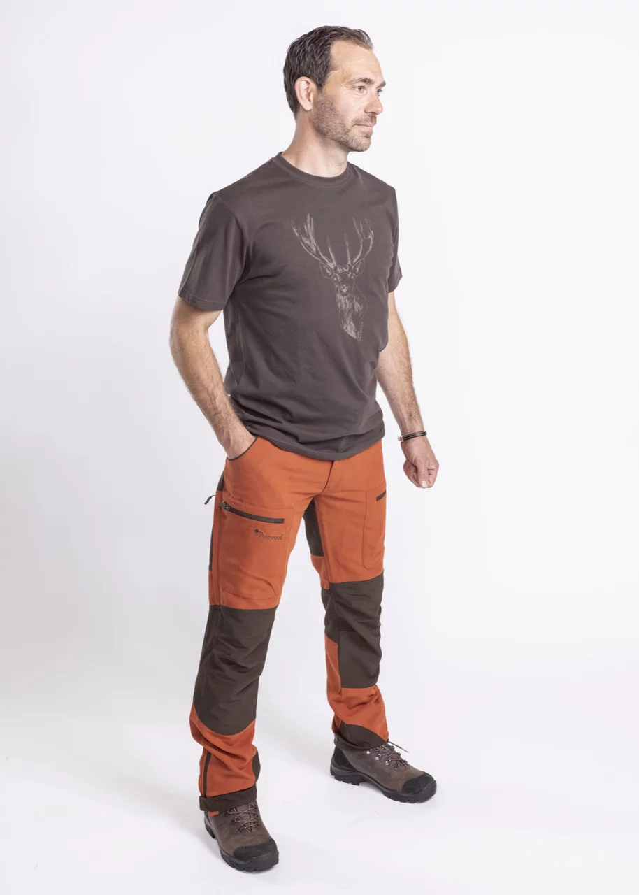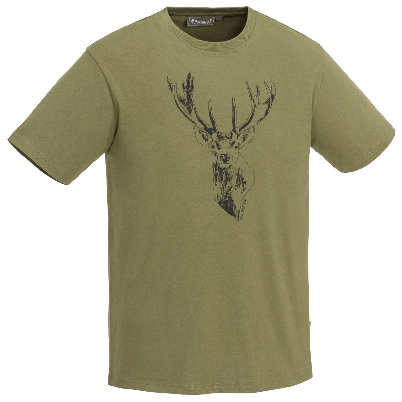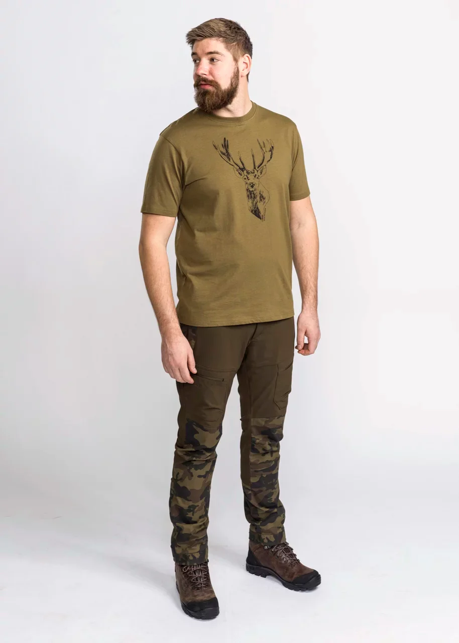 Camiseta confeccionada en algodón orgánico y certificado de 180 gramos con motivo de ciervo estampado. Escote redondo. Ajuste normal.