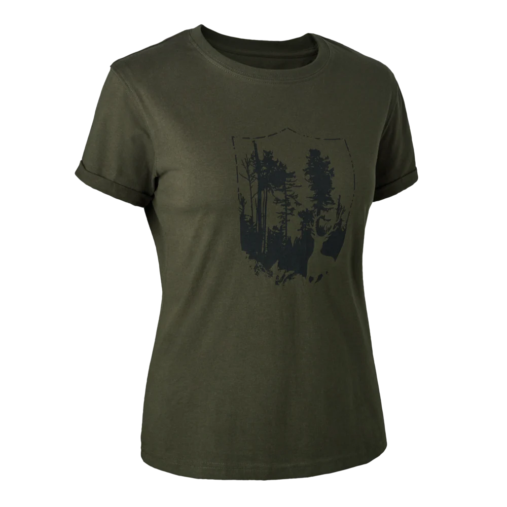 Esta camiseta ligera de Deerhunter está hecha de una mezcla de algodón para una sensación cómoda y transpirable. Con un cuello redondo informal y mangas cortas, la camiseta con el escudo Deerhunter es perfecta para los días soleados en el campo y las escapadas de verano o como base para las capas en los días fríos. El estampado del escudo Deerhunter aporta un diseño fresco y moderno y resonará entre los cazadores de todo el mundo.