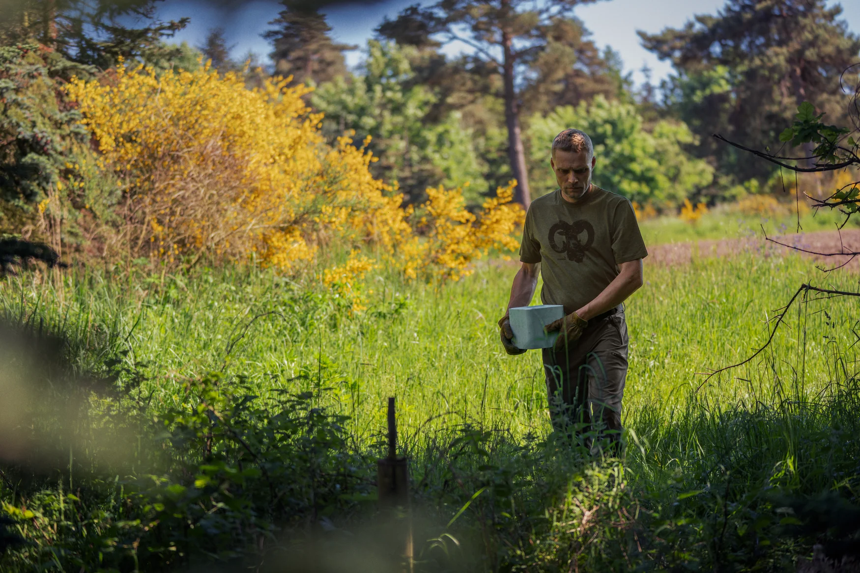 La camiseta Outdoor es una camiseta de algodón suave con un gran estampado de caza en el pecho y cuello redondo. La camiseta tiene un corte normal.