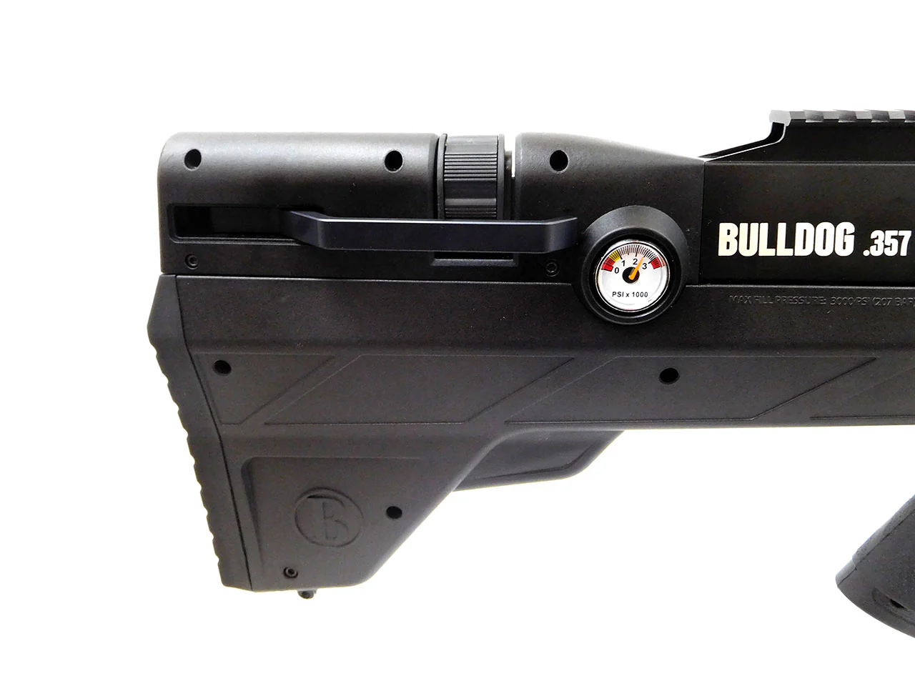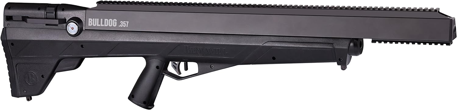 Crosman ha desarrollado la Benjamin Bulldog, una carabina de PCP con calibre .357. Se trata del calibre con mayor impacto en la historia. Se acciona por un cerrojo lateral reversible y es apta también para zurdos. Incorpora un cargador multitiro de 5 balas fácil de cargar. Cuenta con formato bullpup y cañón de acero estriado.