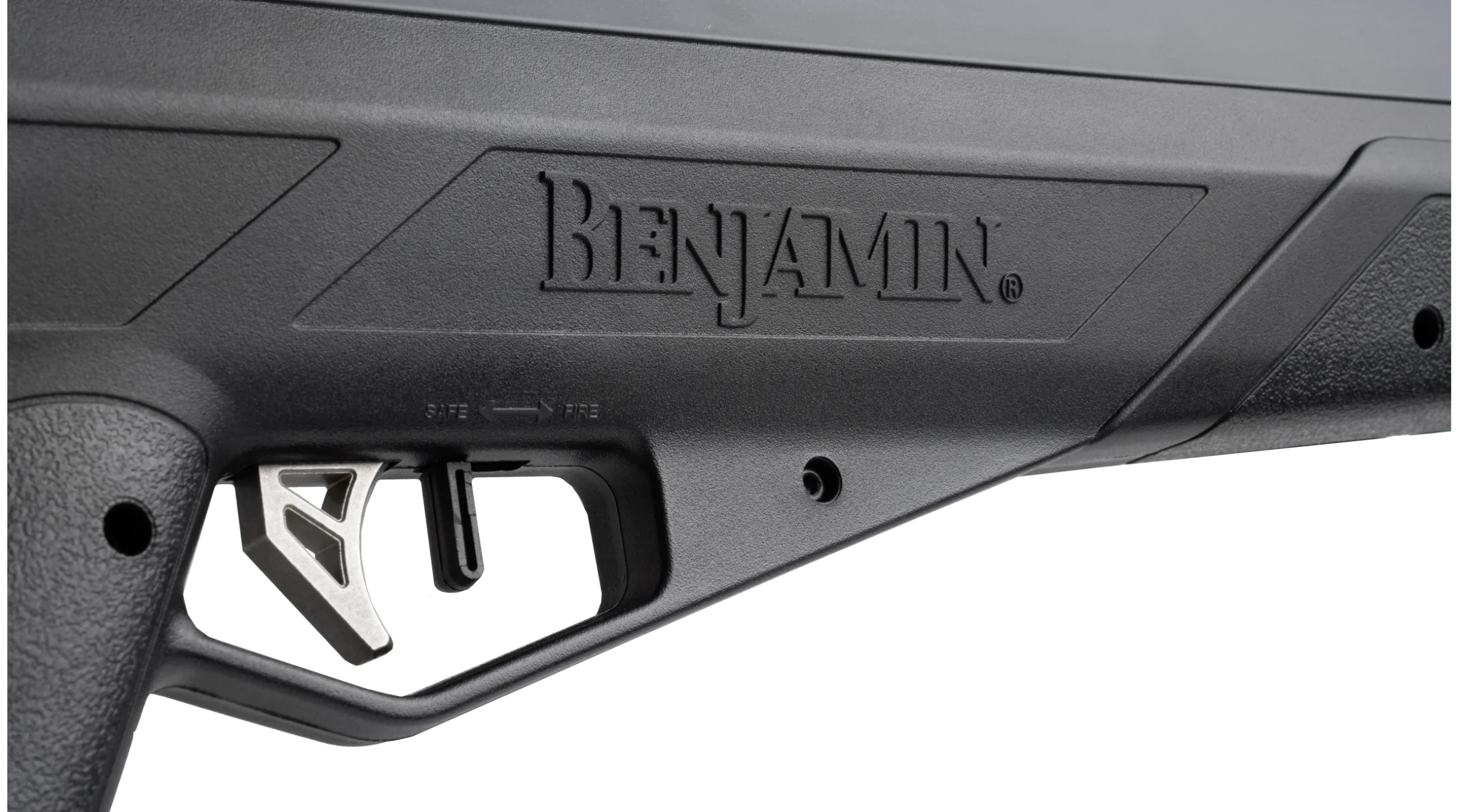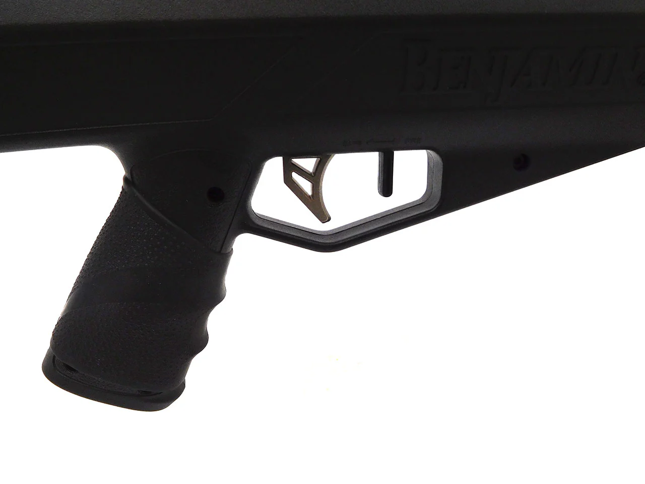 El cuerpo de la Benjamin Bulldog está fabricado en fibra sintética de alto rendimiento. A su vez, cuenta con una culata sintética ambidiestra y una cantonera de goma para una mayor ergonomía. Esta carabina PCP se acciona mediante un cerrojo lateral reversible y dispone de seguro de disparo manual.