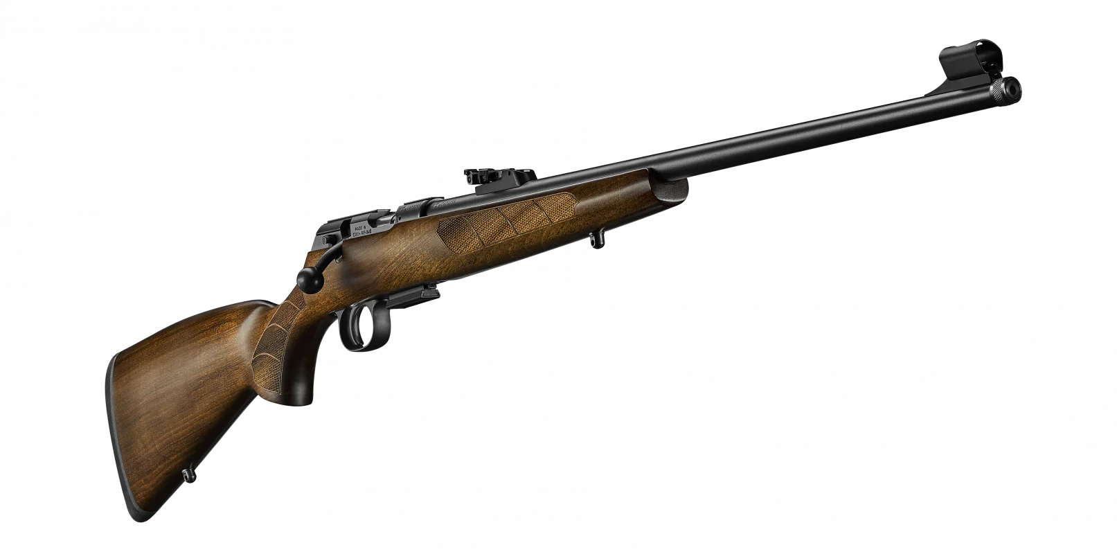 Carabina de pequeño calibre con el diseño de un rifle de caza clásico europeo. Culata barnizada de madera de nogal turco de calidad es provista con una carrillera y superficies de agarre picadas con láser. Esta versión está equipada con miras mecánicas de diseño tradicional.