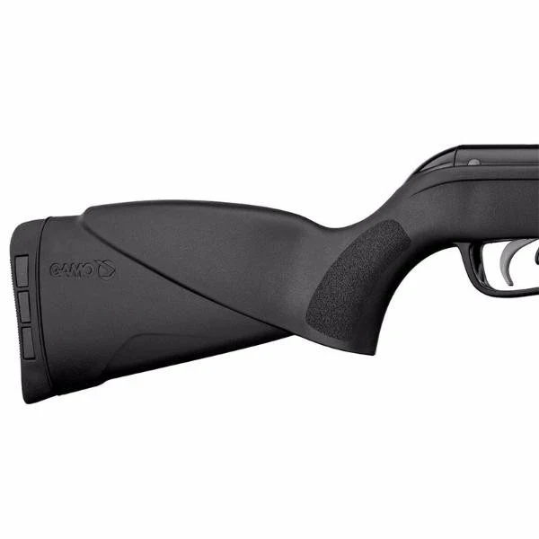 Gamo ha diseñado esta carabina en fibra sintética con culata ergonómica ambidiestra para el fácil manejo del arma por parte de cualquier tirador y con el sistema de amortiguación de ondas de choque SWA. El tirador puede extraer parcial o totalmente las tres almohadillas de goma situadas en la cantonera ajustable para controlar el impacto tras disparo y reducirlo hasta en un 74%.
