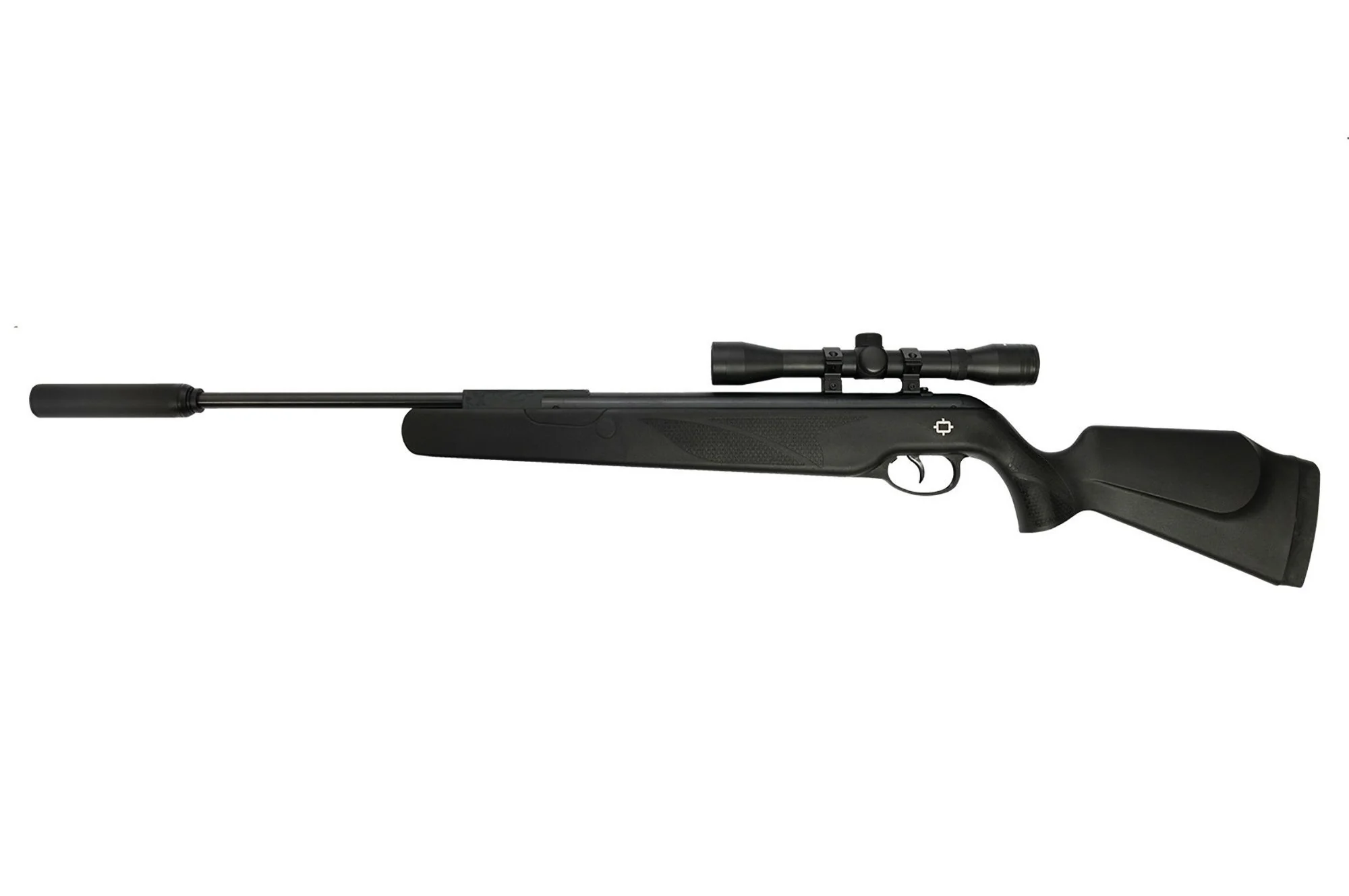 Equipada con tecnología SilentShot integrada mediante un supresor fijo de aluminio anodizado, su culata ambidiestra de fibra anti-choque presenta un pequeño compartimiento portaobjetos en la empuñadura y cantonera en goma de alta absorción de retroceso. Se incluye visor Norica 4×32, concebido y fabricado para carabinas de muelle de alta potencia y monturas medias en aleación de aluminio de alta calidad.