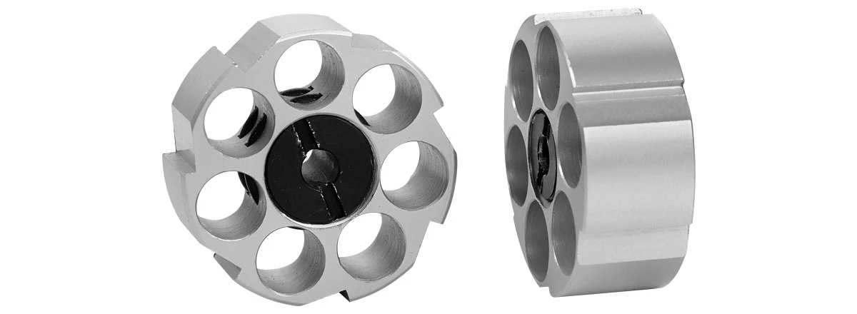 • Cargador giratorio desmontable de 7 disparos en calibre .30 (7.62 mm) y cargador giratorio de 6 disparos en calibre .35 (9mm).