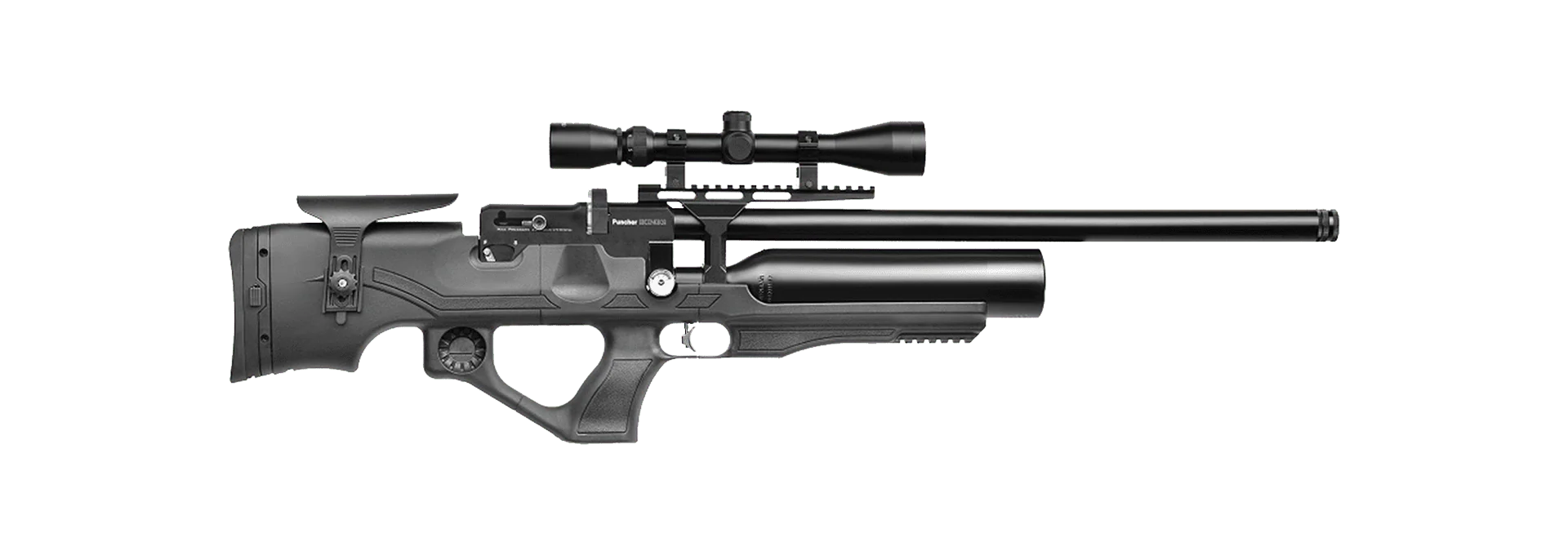 - PCP de 24 julios de potencia. – Adaptable a semiautomático. – Calibres y balines por cargador: 5’50 mm. 12 balines. 6’35 mm. 10 balines.