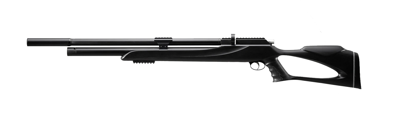 Una característica destacable es que cuenta con un cañón de acero estriado con un reguladory silenciador integrado, que permitirá una excelente precisión y un control total sobre la potencia de salida de la munición. Su calibre es de 7,62 mm perfecto para la caza de objetivos más grandes y posee un seguro manual para evitar descargas accidentales.