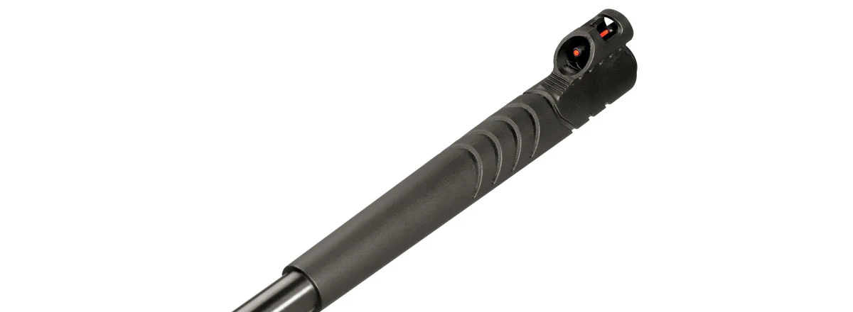 - Culata en polymero tipo Montecarlo ambidiestra y diseño ergonómico, con inserciones de goma a ambos lados de las cachas y guardamanos para