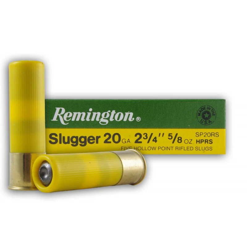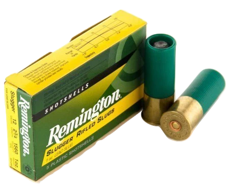 Munición Remington Slugger para el calibre 12/70, 20/70 o 410/67 de escopeta. Bala estriada. Vaina normal.