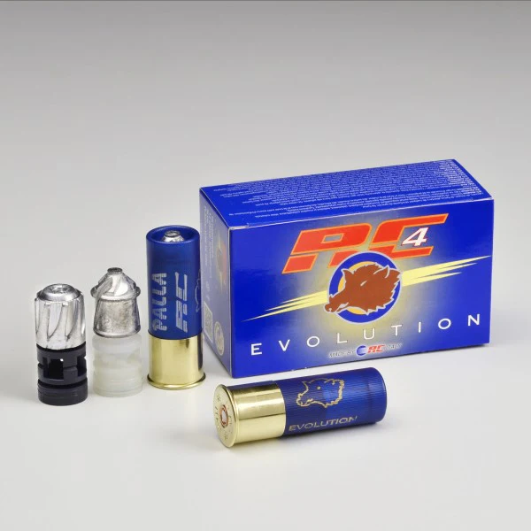 Cartuchos RC4 PALLA EVOLUTION de calibre 12/67/20 y de carga de 28+4 gramos. Perdigón de RC Slug 32