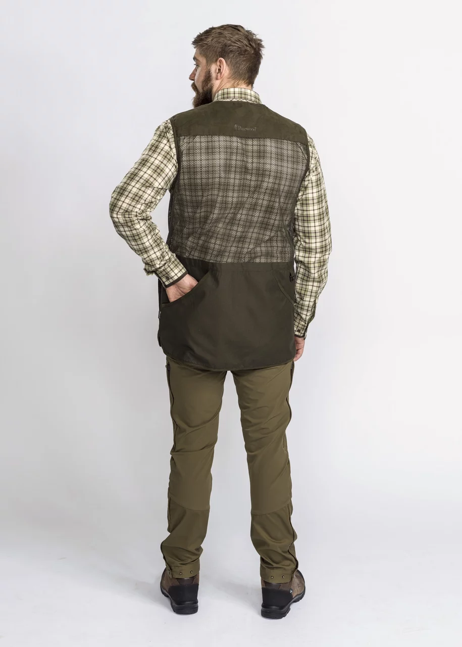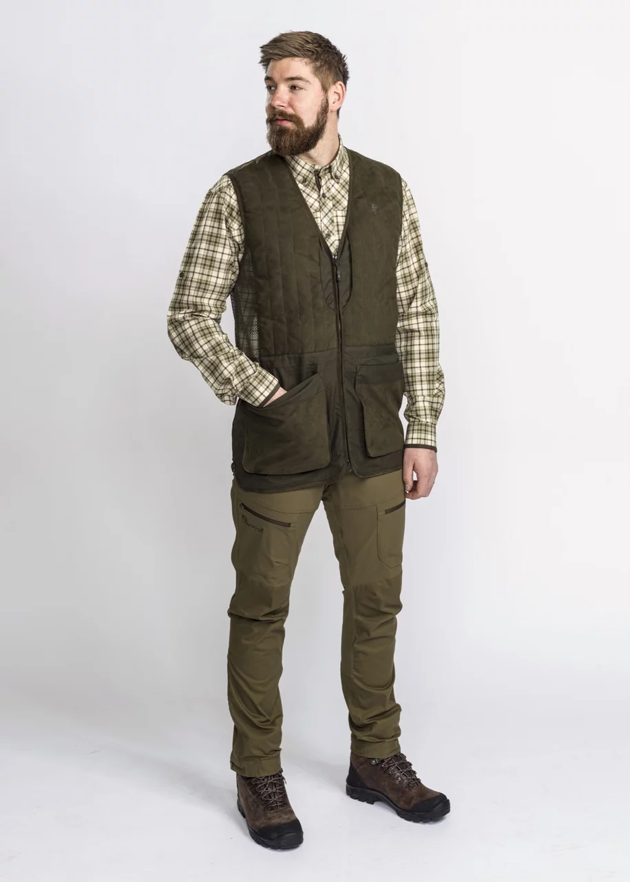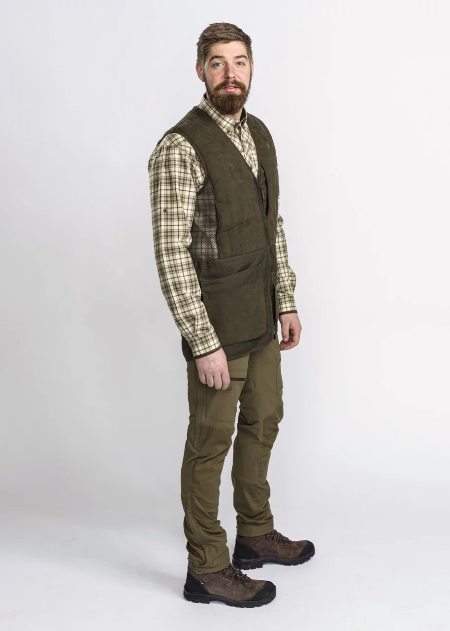 El chaleco de tiro Pinewood Cadley es un chaleco cómodo para el campo de tiro, así como para la caza. Cremallera bidireccional, almohadilla de protección contra retroceso, amplio bolsillo para juegos y bolsillos delanteros para municiones. Detalles en piel sintética.