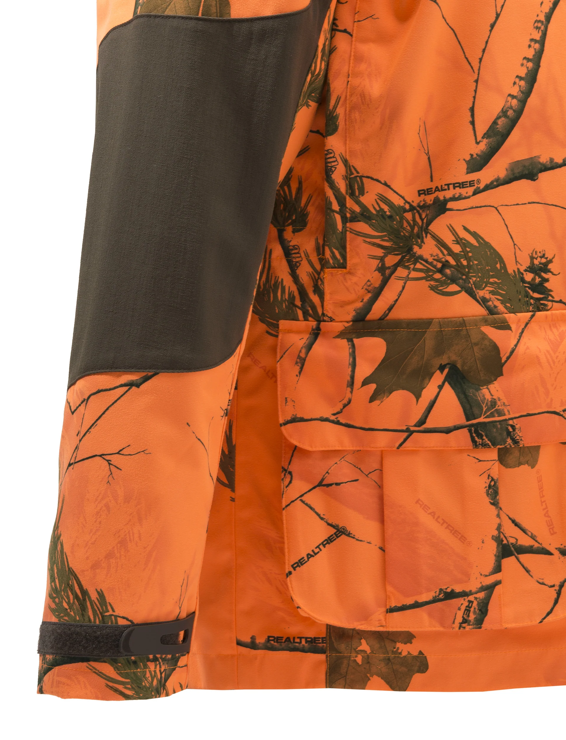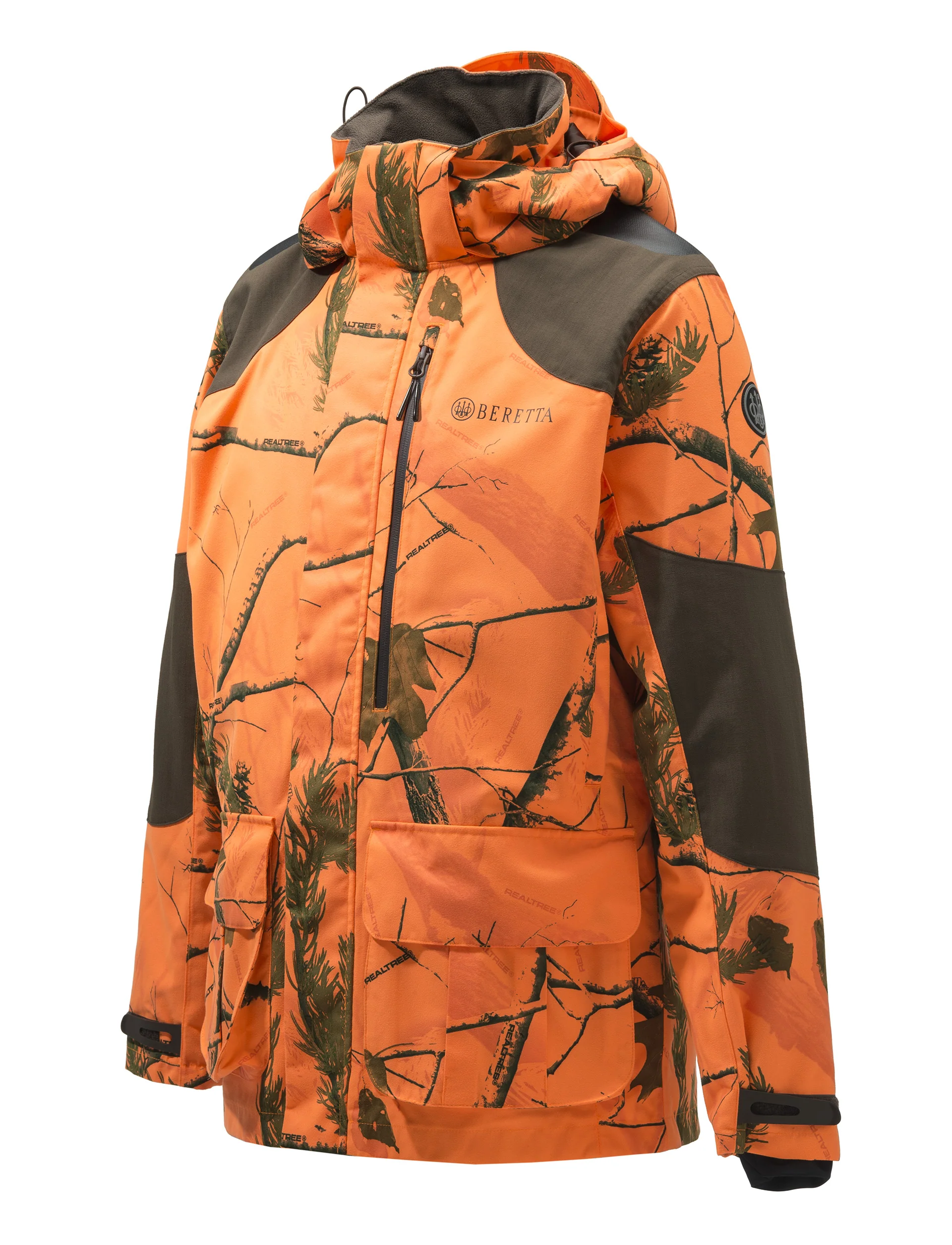 La chaqueta de caza para hombre Gascon está estudiada para caza activa o estática, donde se requiere una elevada visibilidad. La chaqueta es impermeable y transpirable con BWB EVO, la membrana EVO impermeable y transpirable de Beretta, poliéster y forro interior que ayuda a controlar la humedad. Desarrollada en Realtree AP® Blaze Orange Camo para las zonas en las que, por seguridad, se requiere el naranja de elevada visibilidad La chaqueta incluye bolsillos amplios y un morral que se puede lavar.