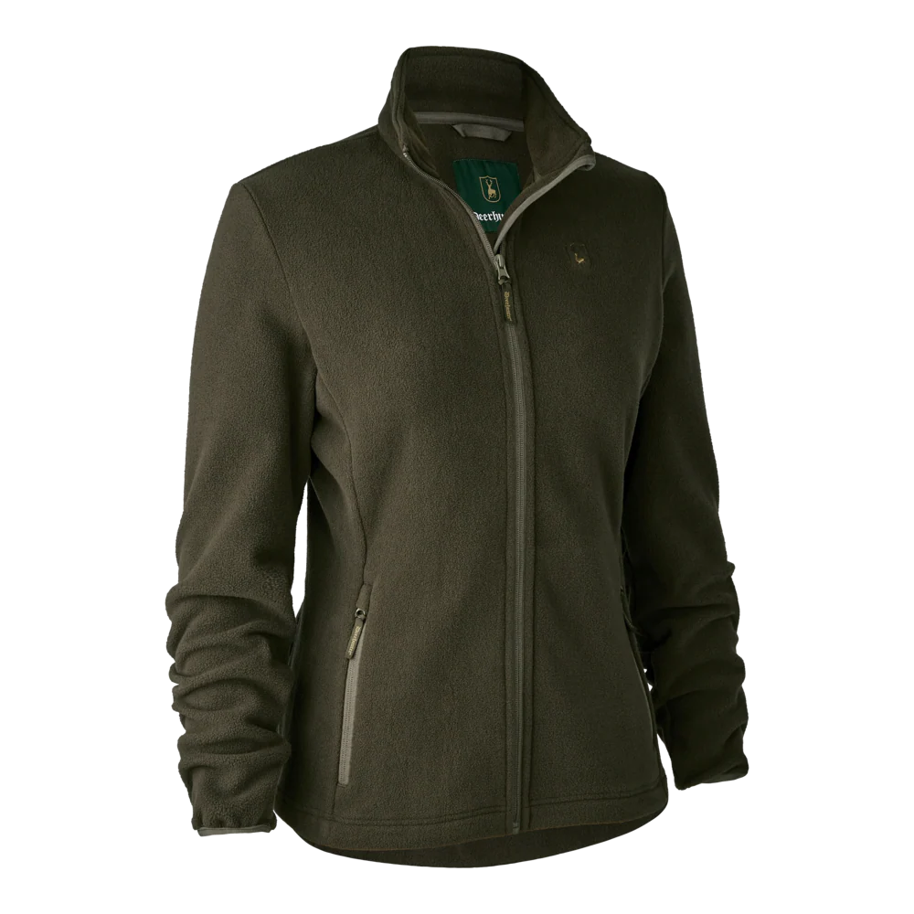 Ninguna colección de Deerhunter estaría completa sin la chaqueta de micropolar de tacto suave, ligera pero cálida. La chaqueta de vellón Lady Chasse tiene un estilo elegante pero práctico y es adecuada para llevarla como capa de abrigo en lo más profundo del invierno o por sí sola cuando los días de verano tienen un final frío y los de otoño un comienzo frío. La chaqueta de forro polar, sencilla y elegante, se complementa con una atractiva cinta de contraste en los puños, los bolsillos y la cremallera central.