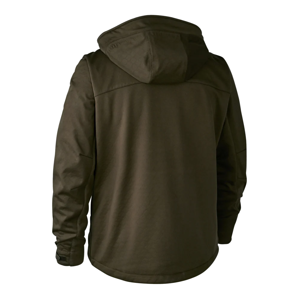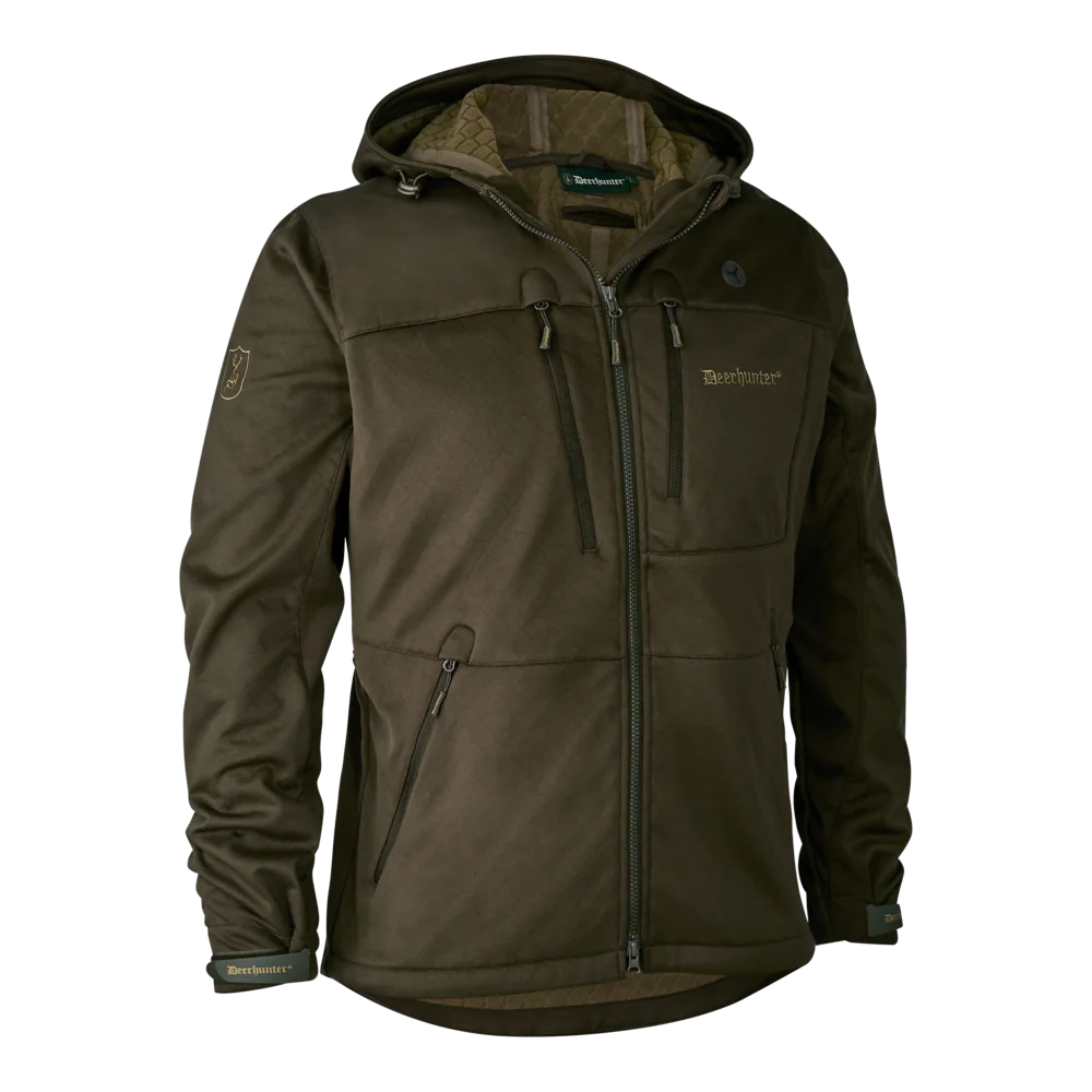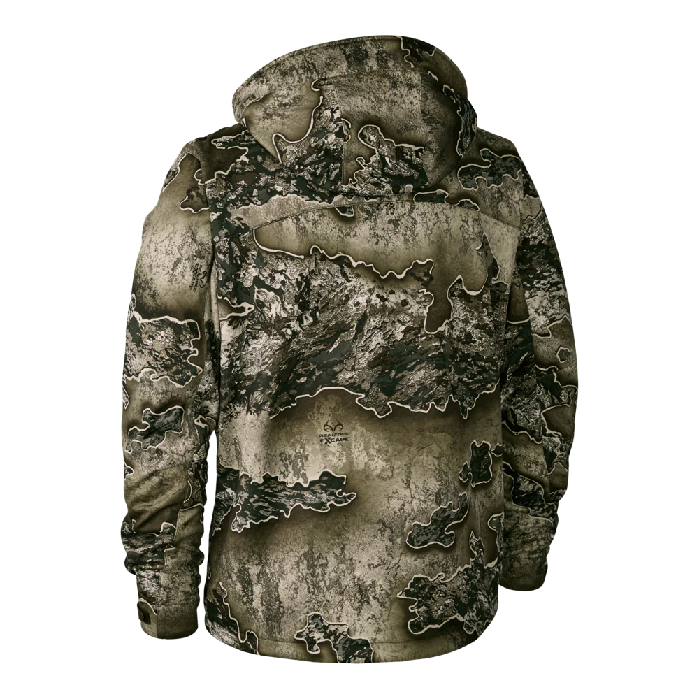 La chaqueta Deerhunter Excape Softshell tiene la mezcla perfecta de tejidos y protección para mantenerte caliente y seco frente a los elementos. Con el Stormliner de Deerhunter en los hombros y en la parte superior de las mangas, ofrece repelencia al agua, protección contra el viento y tejido elástico. Permitiendo un rango completo de movimiento y protección, perfecto para cualquier aventura. Puede satisfacer sus preferencias de estilo, con dos opciones de color disponibles. Un sutil camuflaje Art Green o Realtree Excape para lo último en sigilo. Sabemos que es importante que mantengas todos tus objetos seguros y secos durante tu excursión, por eso la chaqueta Excape Softshell está repleta de opciones de almacenamiento; incluyendo dos bolsillos en el pecho con cremalleras resistentes al agua y dos bolsillos delanteros con cremalleras resistentes al agua son sólo el principio de las opciones de almacenamiento seguro. Los codos preformados, los puños ajustables con correa y velcro y un cordón ajustable en la parte inferior te proporcionan el ajuste perfecto. Si el clima trae un poco de calor, la chaqueta está equipada con ventilación en las axilas para mantenerte fresco cuando sea necesario. Mientras que la chaqueta Deerhunter Excape Softshell tiene todas estas características funcionales, en la vanguardia de este diseño está su capacidad suave y silenciosa en esos momentos finales del rececho, cuando cuenta.