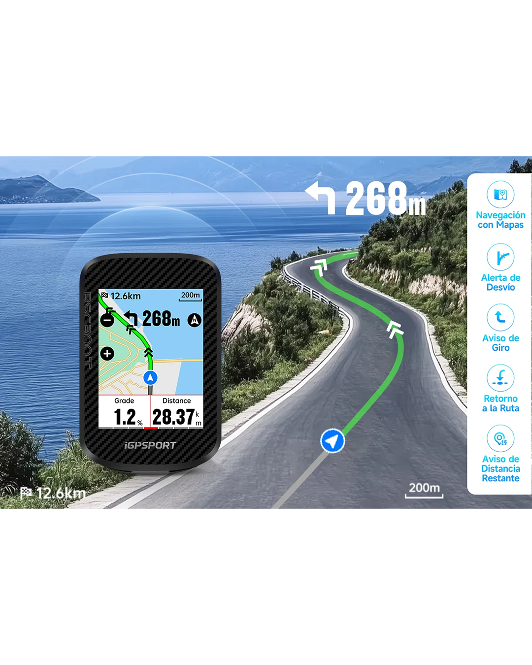 - El ordenador de ciclo es compatible con la descarga de mapas offline global, puede guardar varias rutas, soporta la vista previa de la ruta y los avisos de giro, lo que hace que pueda viajar por el mundo sin perderse.