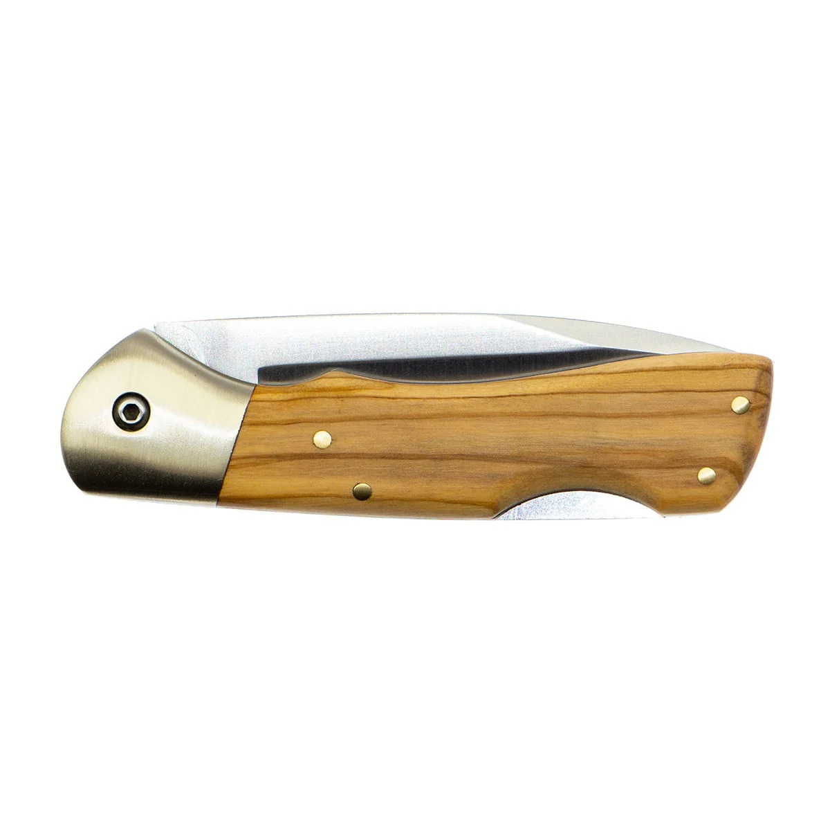 Navaja bloqueo y cachas de madera olivo y alpaca.