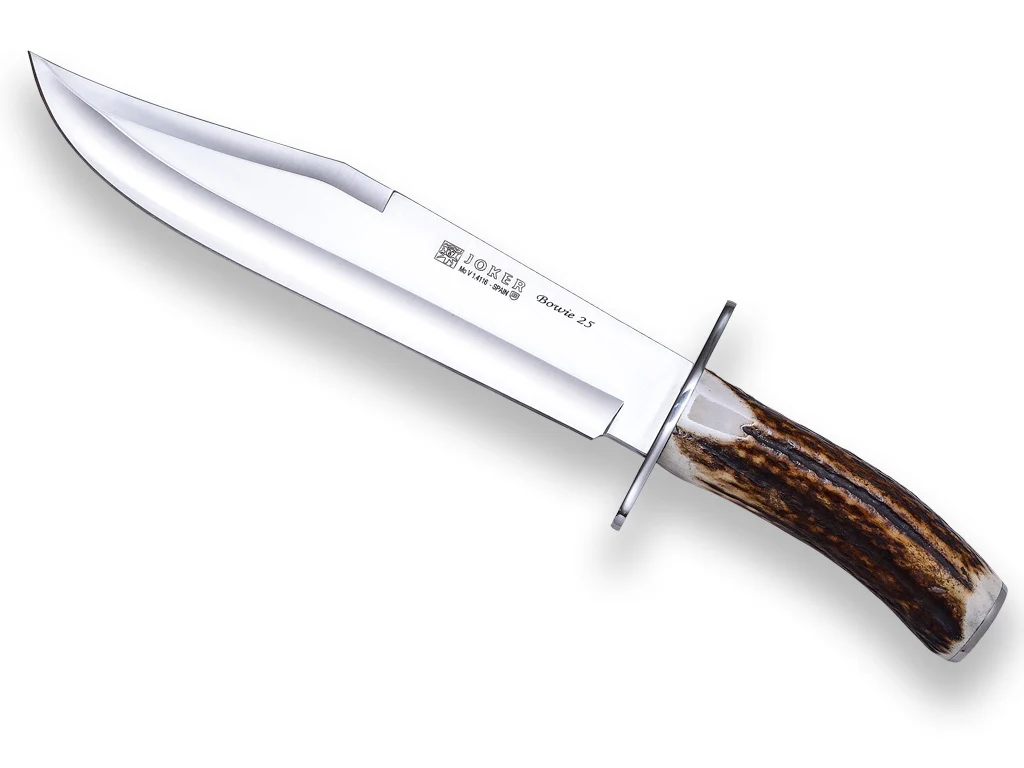 Cuchillo de caza joker bowie 25 con puño de corona asta ciervo y hoja de 25 cm.
