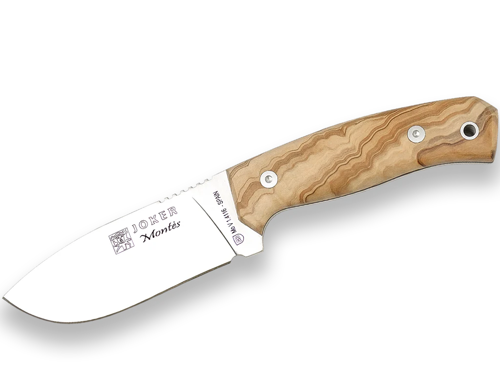CUCHILLO DE MONTE ENTERIZO CON CACHAS EN MADERA DE OLIVO Y HOJA INOX DE 10,5 CM