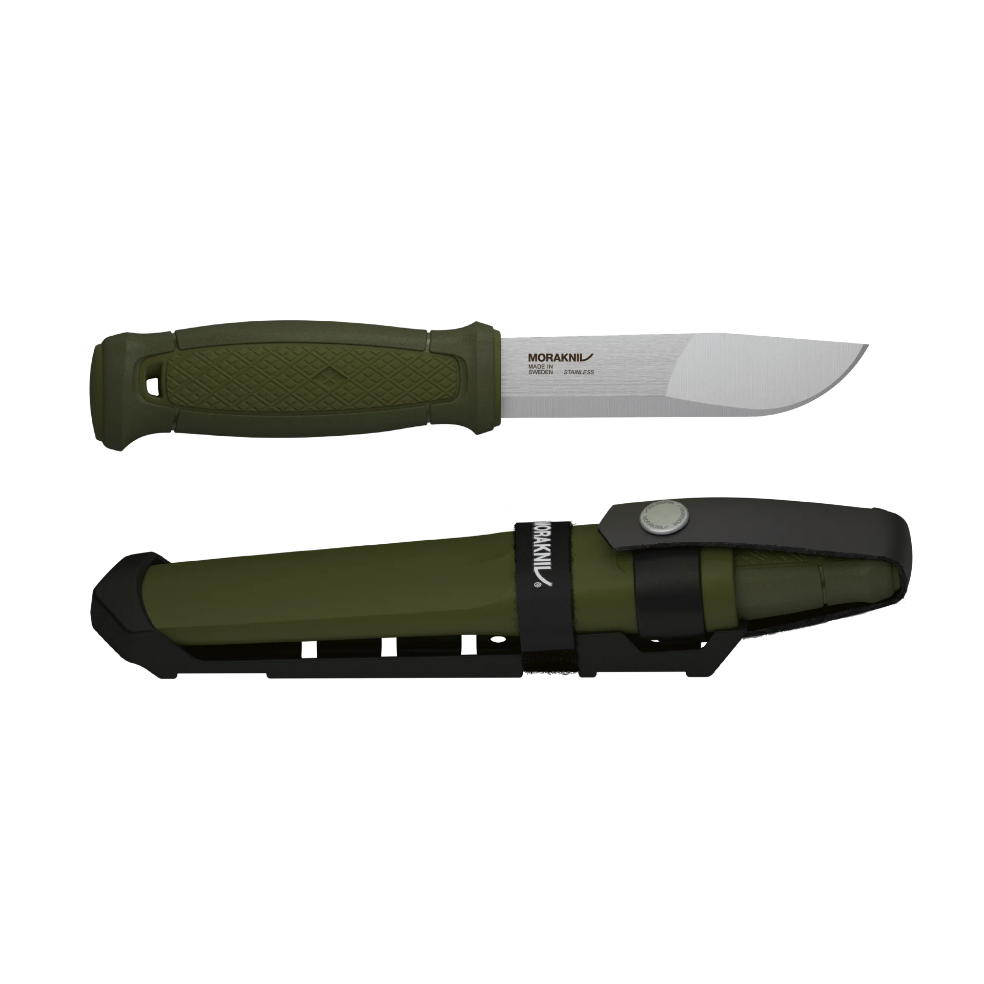 Un cuchillo fiable para exteriores con opciones de montaje avanzadas que puede utilizarse en muchas situaciones difíciles. Diseñado para el cazador y el aventurero, el cuchillo es una excelente opción cuando se necesita una herramienta segura y robusta a mano. La hoja de acero inoxidable sueco reciclado tiene un afilado duradero. También es compatible con un iniciador de fuego.