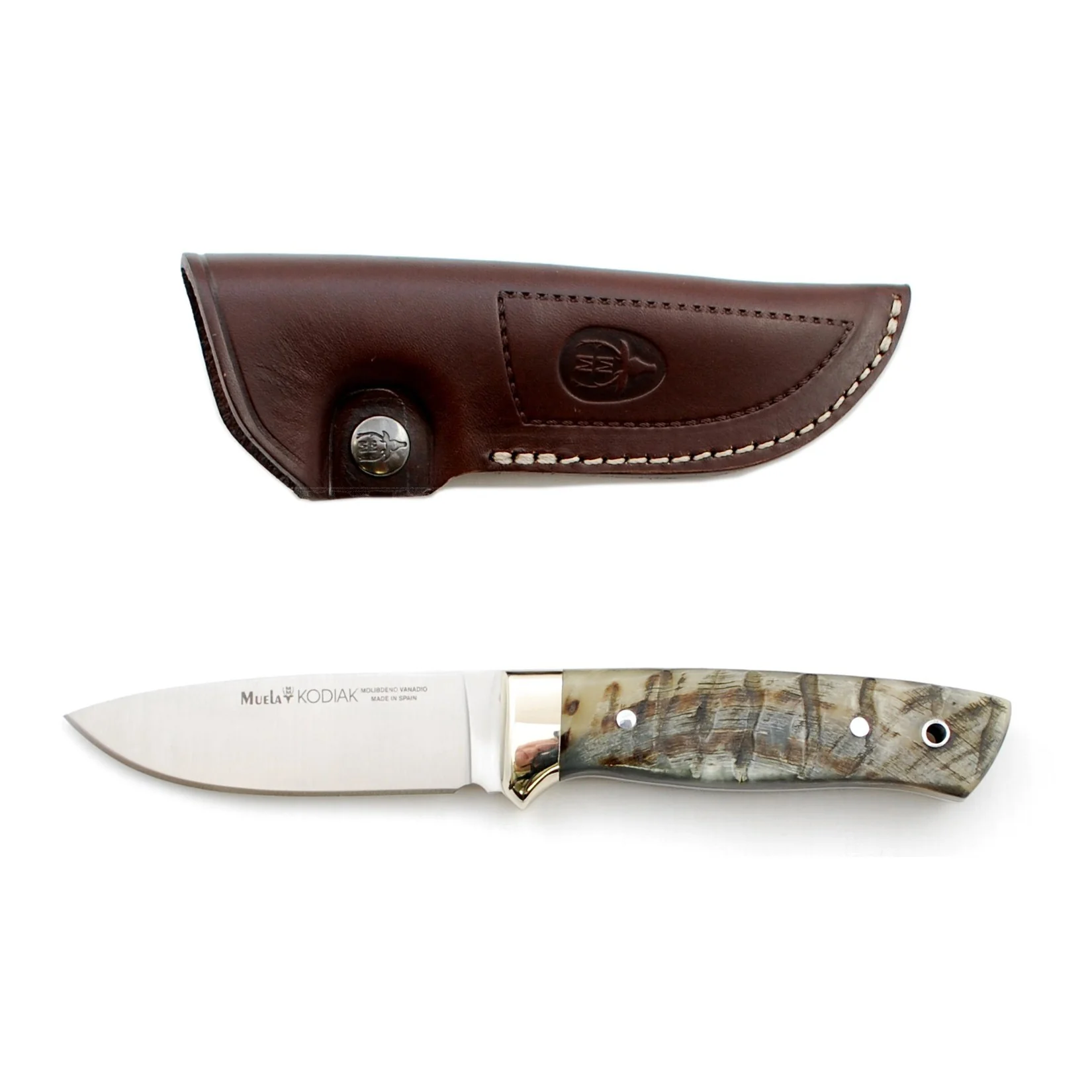 El cuchillo Muela Kodiak está equipado con una funda de cuero de alta calidad para equipar el cuchillo en todo tipo de condiciones. Incluye un adaptador para el cinturón, para que sea más cómodo de transportar. En la funda viene sobre-impresionado el logotipo del fabricante del cuchillo.