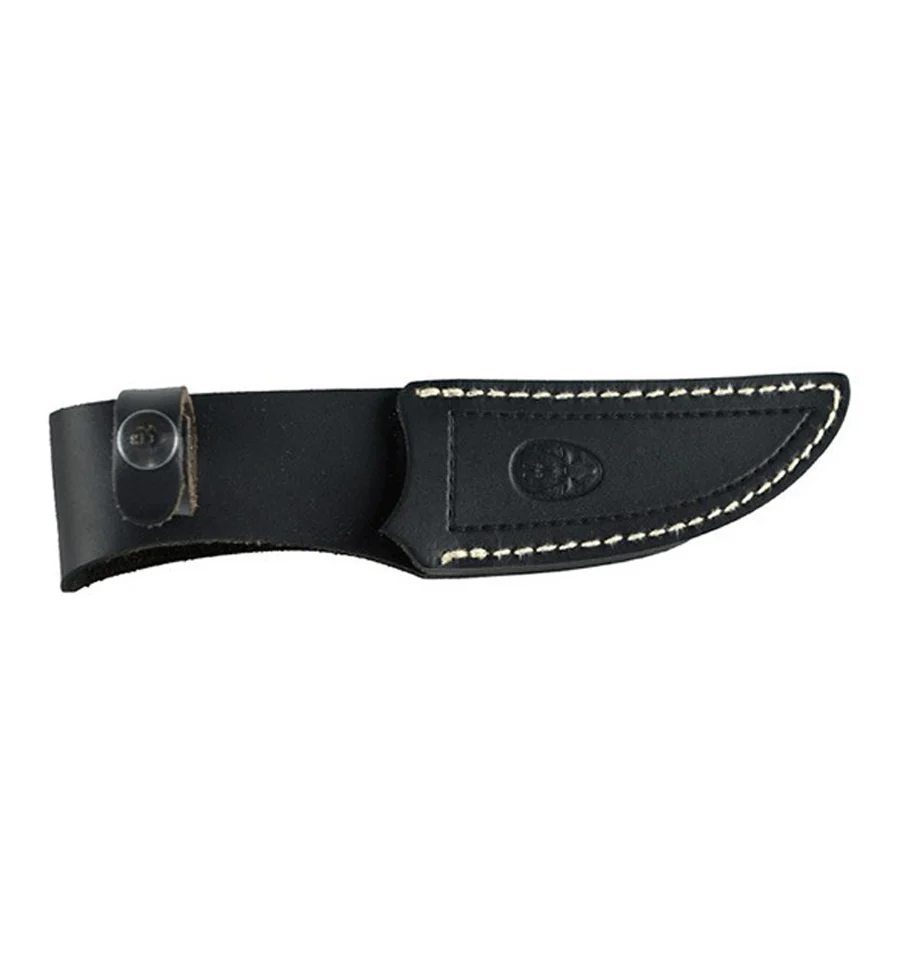 Cuchillo enterizo con cachas de micarta blanca y madera prensada rosewood.Su hoja mide 100mm,incluye funda de piel.