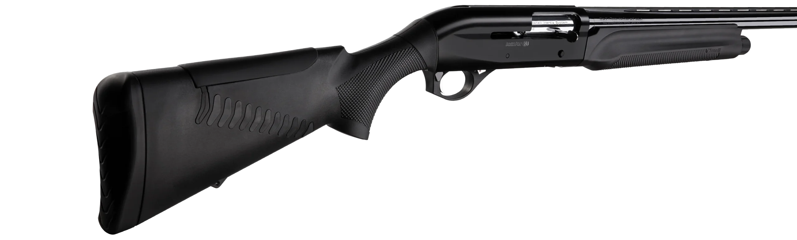 Gama MONTEFELTRO, escopeta semiautomática por sistema de carga inercial con cerrojo rotativo autocentrante que combina, rapidez de disparo, máxima fiabilidad, escaso retroceso y durabilidad extrema. Otra característica de la gama Montefeltro es el botón de liberación directa de un cartucho del almacén para carga rápida. Disponible para tirador diestro o zurdo dependiendo del modelo, en calibre 12 con recamara magnum de 76mm (3″).