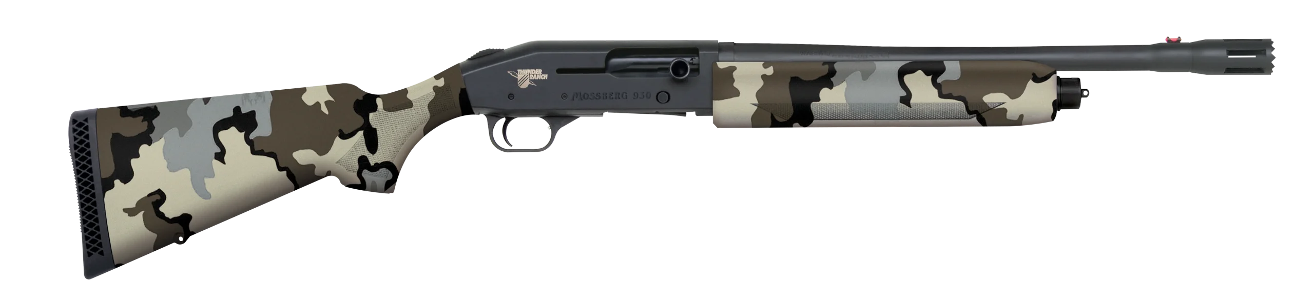 En cuanto a sus dimensiones de este modelo, la Mossberg 930 Thunder Ranch, estas están son muy compactas gracias a su cañón de 18.5” (469 mm) realizado en acero al carbono, que da una longitud total de 990 mm. Es un arma bien equilibrada, con un peso relativamente liviano, ya que son 3.400 g una característica que nos permite encares veloces y tiros rápidos de seguimiento. Esto último algo que podemos constatar viendo vídeos de Jerry Miculek con esta 930. También ayuda la calidad del disparador, que sin llegar a ser de competición, es de los más ligeros de su categoría, tan solo 2,40 Kg.