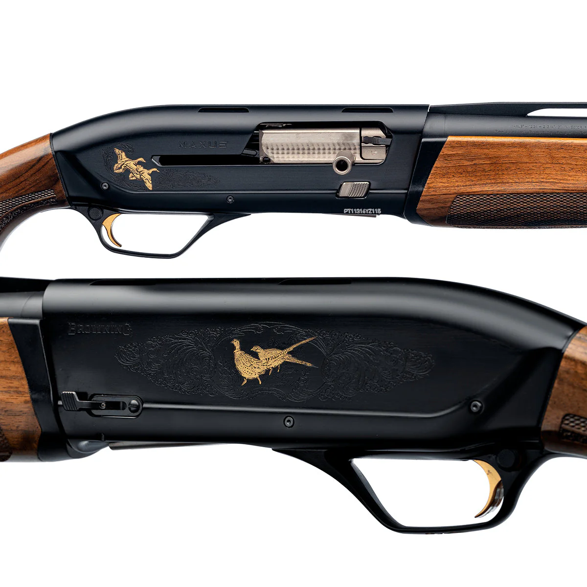 Todas las Maxus, con excepción de los modelos Sporting, están equipadas con un seguro del cargador para que el tirador pueda descargar fácilmente la recámara y, de este modo, cambiar de tipo de cartucho sin tener que añadir un cartucho del cargador en la recámara.