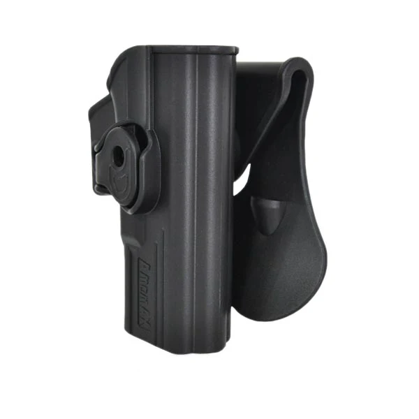 El cuerpo de la funda y la plataforma de transporte están conectados con un engranaje de dientes y un tornillo. El cuerpo de la funda tiene una rotación de 360 grados. Los jugadores de airsoft pueden ajustar fácilmente la posición de transporte.