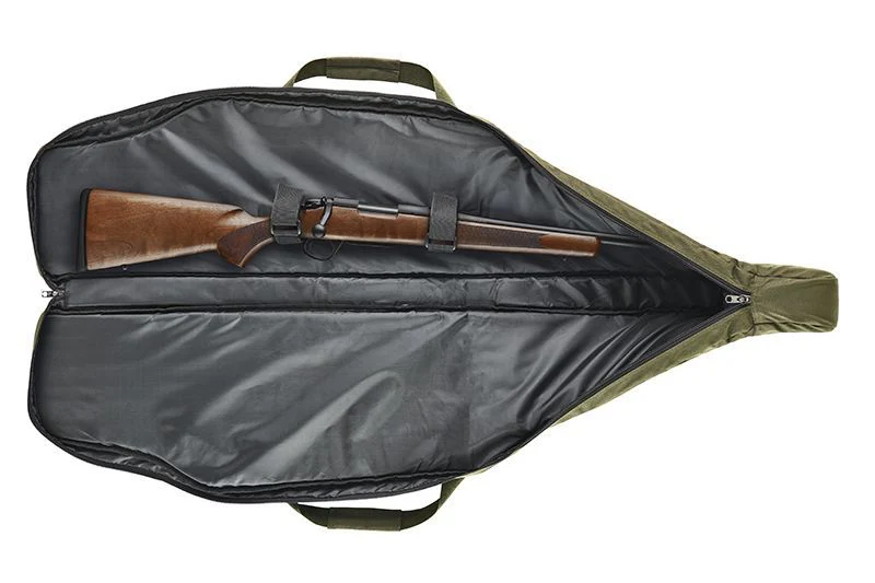 Funda de rifle 100% poliéster con espuma de alta densidad de 15 mm de espesor que proporciona una protección total contra los golpes.