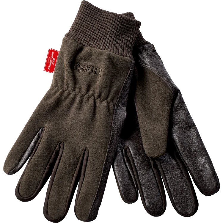 Guante de tiro resistente con palmas de cuero para el agarre y forro polar WINDSTOPPER® transpirable y resistente al viento en el dorso. Los puños altos de punto mantienen las muñecas calientes cuando se dispara.