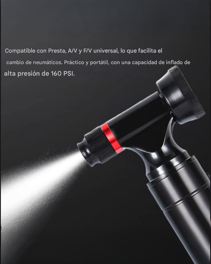 El Mini Inflador de CO2 es la solución definitiva para ciclistas que buscan rapidez y ligereza ante un pinchazo. Fabricado en aluminio CNC, este dispositivo ultra compacto permite inflar un neumático en segundos sin el esfuerzo de una bomba manual. Su sistema de válvula inteligente se adapta automáticamente a Presta y Schrader, mientras que su palanca de control permite regular el flujo de aire con total precisión para evitar desperdicios.