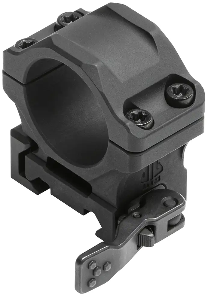 - La montura de liberación rápida (QR) cuenta con ajuste de tensión sin herramientas, palanca de bloqueo de liberación rápida y topes de retroceso cuadrados para una sujeción a cero y un retorno a cero seguros.