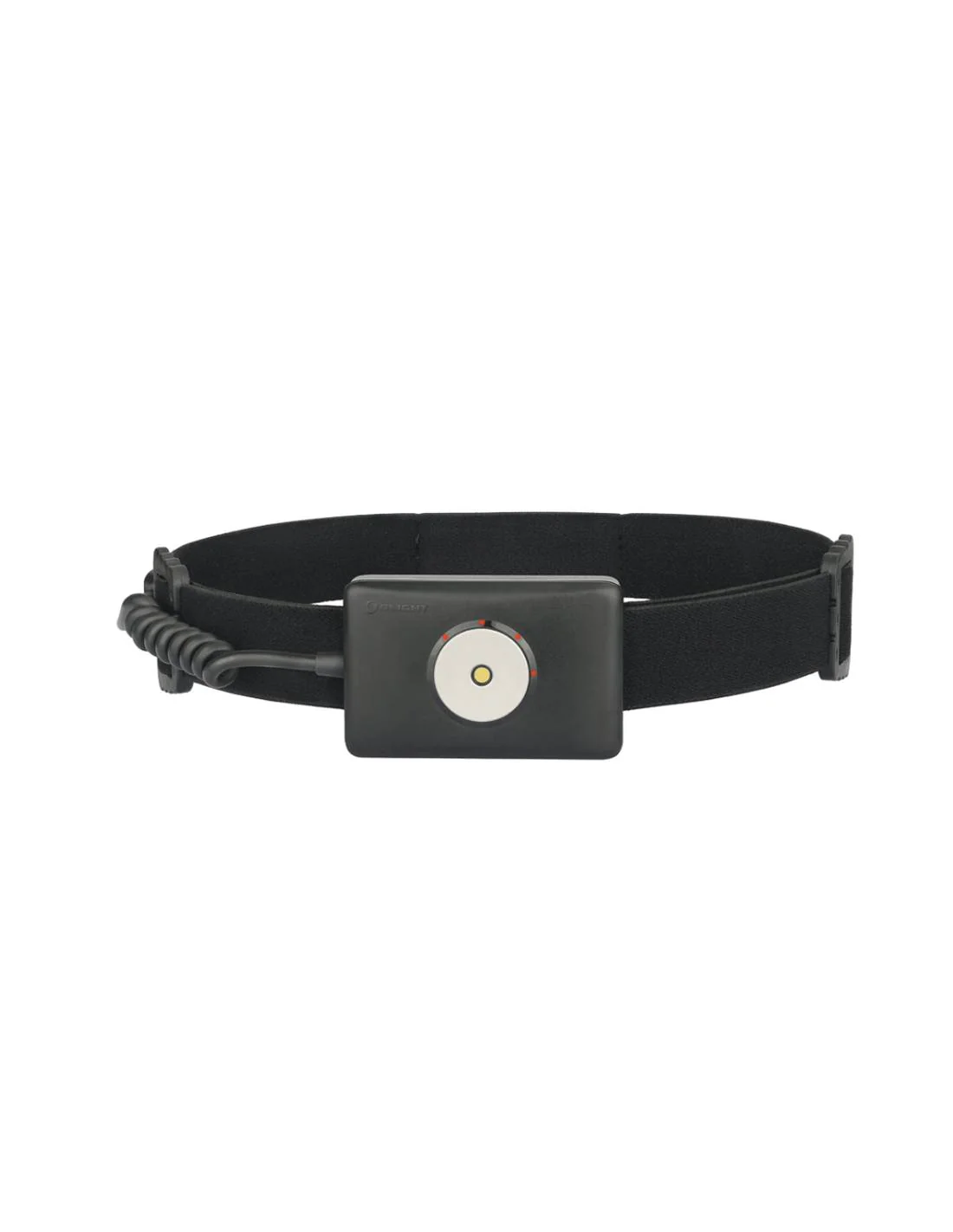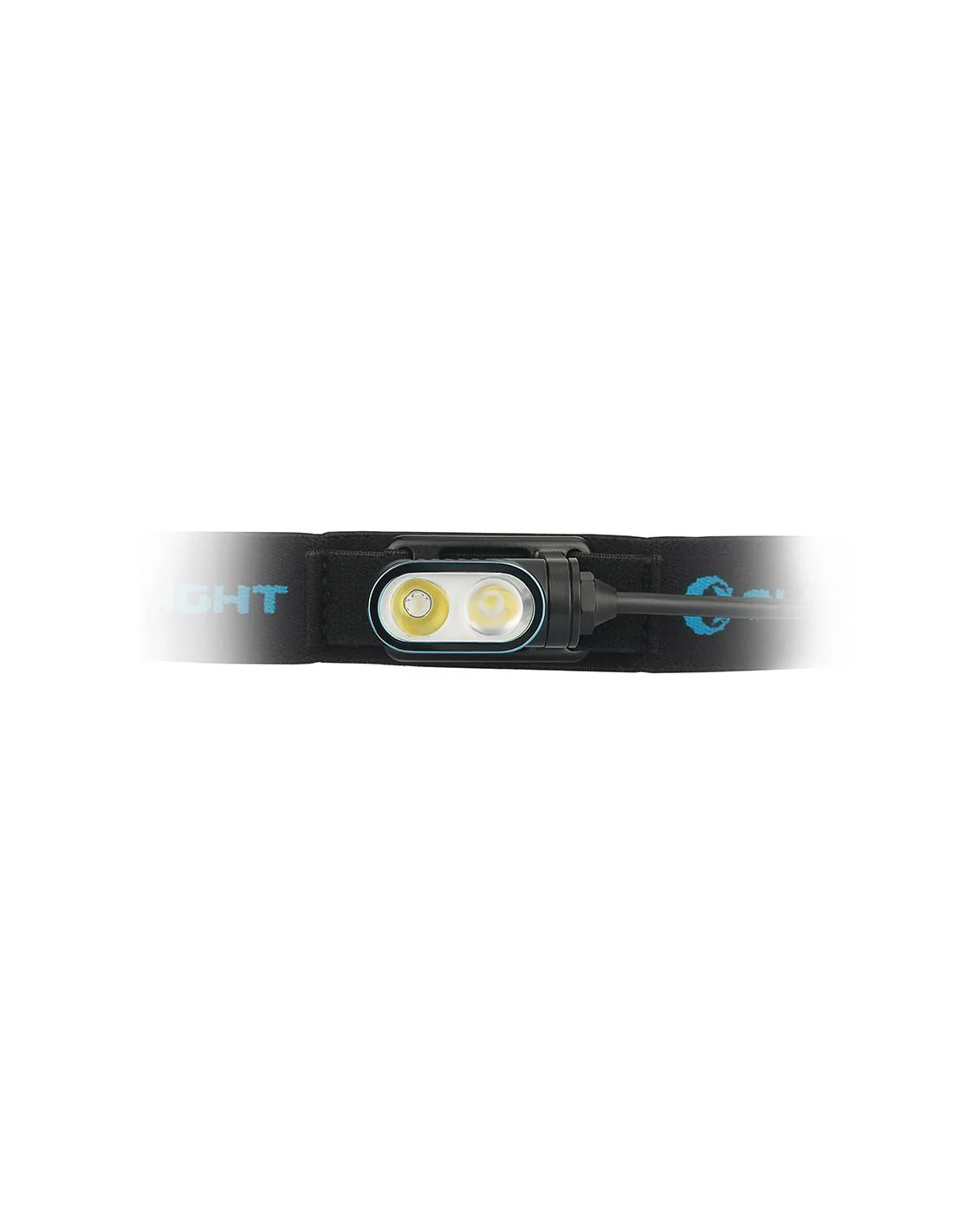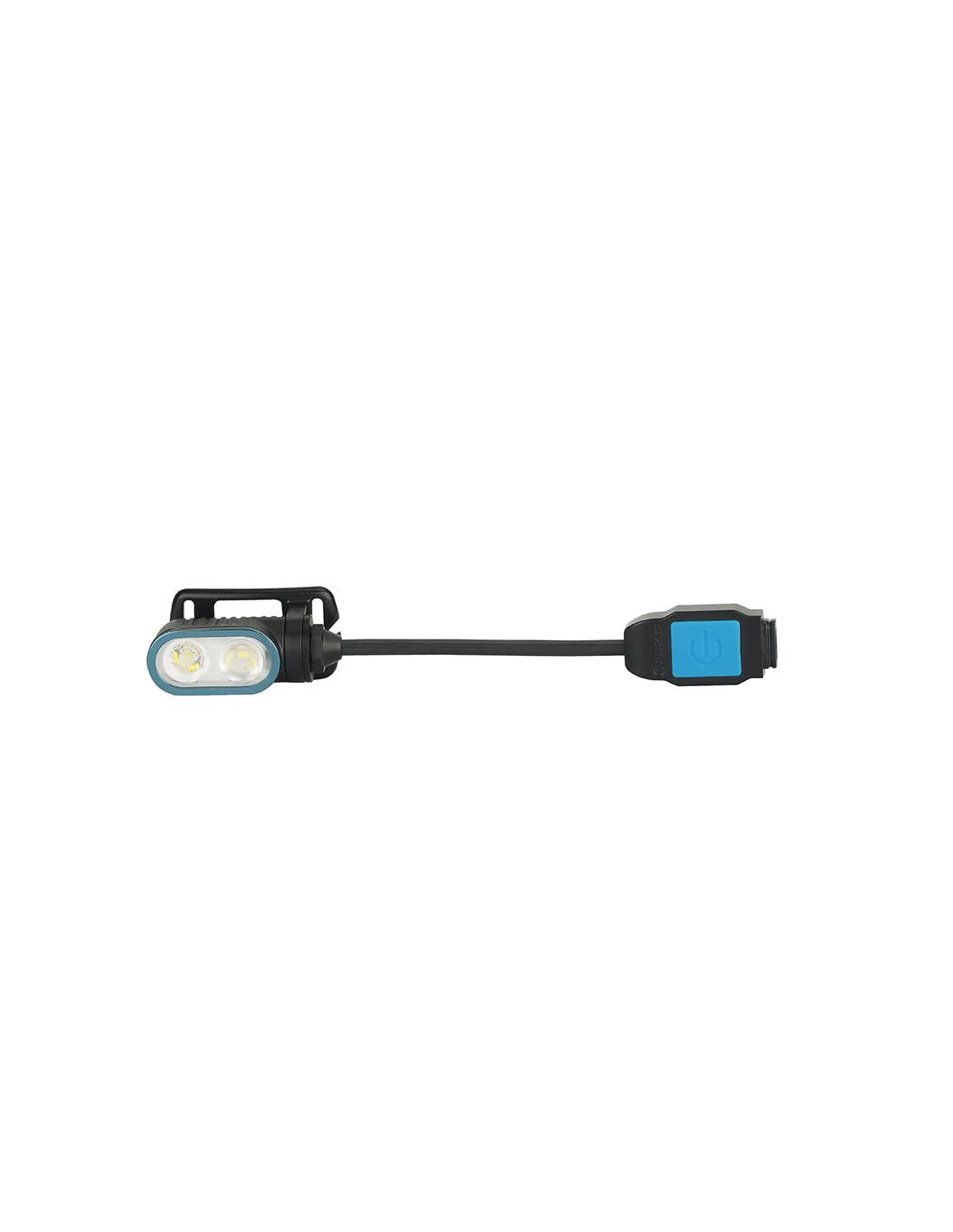 Linterna frontal con luz roja trasera de seguridad y base de carga magnética.