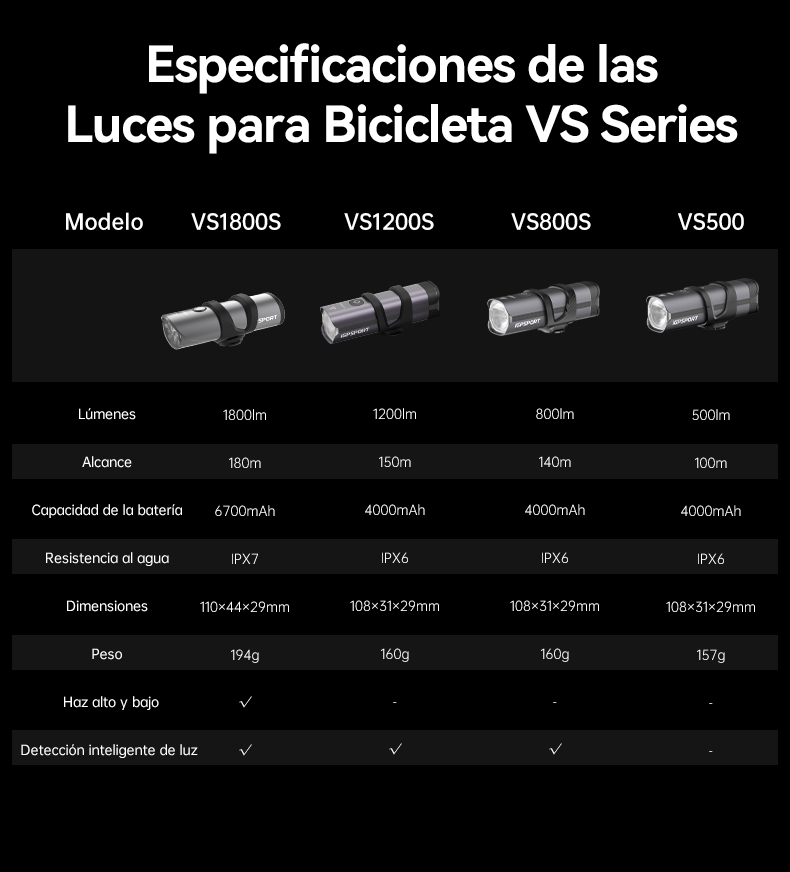 - Duración de la batería en modo de máximo brillo Luz baja 3h, Luz Alta 1.5h