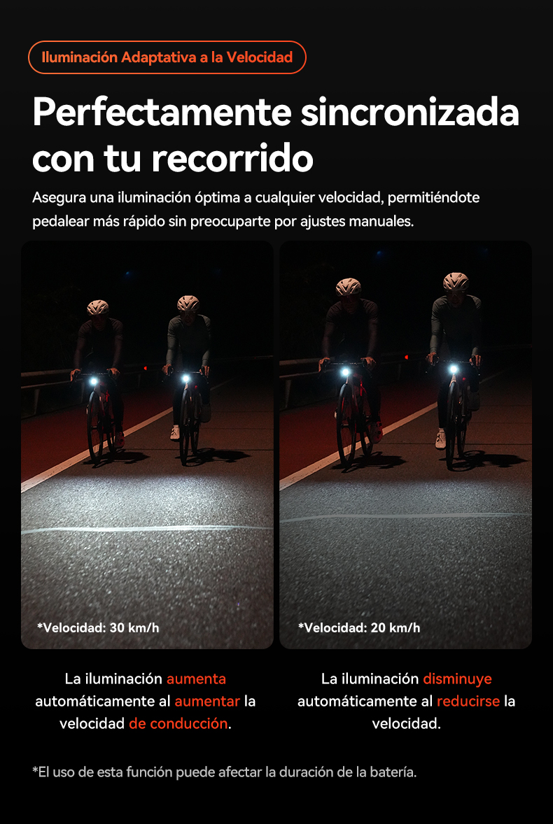 Funcionamiento automático cuando comienzas a montar. Cambia automáticamente al modo de suspensión cuando dejas de montar.