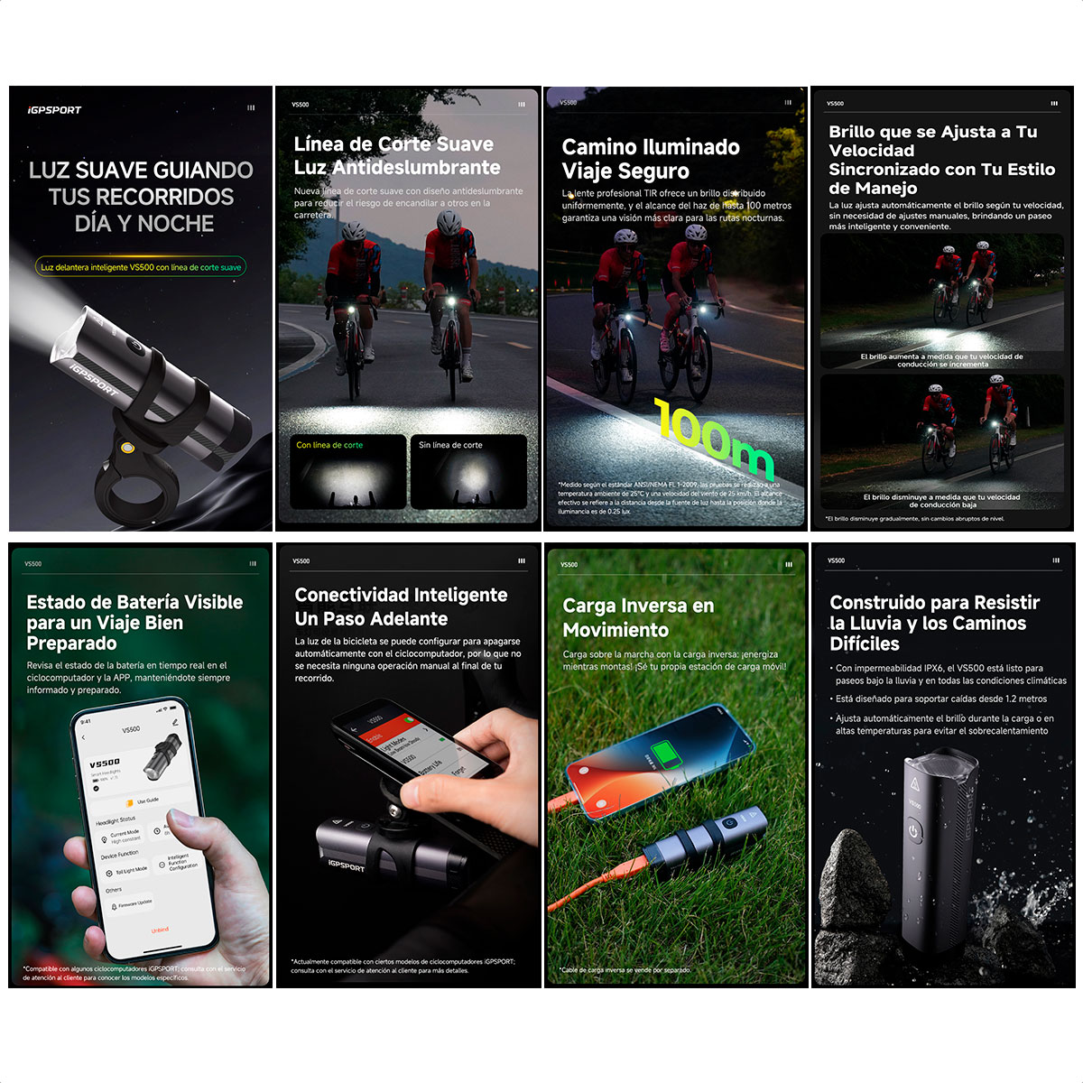 Además, la VS500 ajusta automáticamente su brillo en función de la velocidad del ciclista, proporcionando la cantidad exacta de luz cuando más se necesita. Ya no es necesario realizar ajustes manuales: el VS500 lo hace por ti, asegurando un paseo fluido y sin interrupciones.